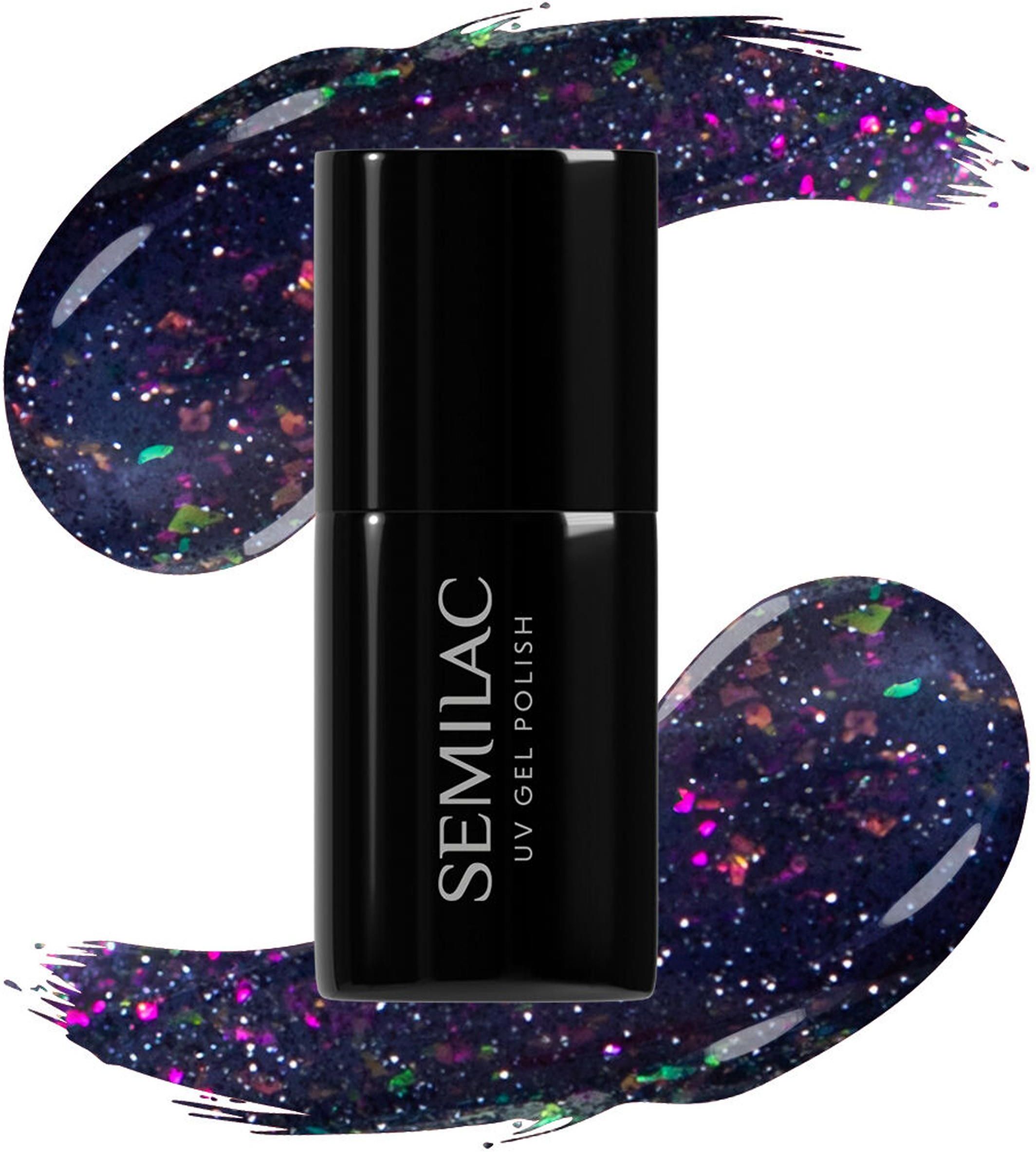 SEMILAC LAKIER HYBRYDOWY 611 VIOLET NIGHT Efekt FLASH dodaje dynamicznego, metalicznego blasku, który ożywia ciemną bazę i nadaje jej intensywnego błysku w świetle. Płatki Galaxy w odcieniach różu i zieleni wprowadzają zjawiskowe refleksy, które zmieniają się w zależności od kąta padania światła. To połączenie tworzy niezwykły, wielowymiarowy efekt, który łączy elegancję czerni z magicznymi refleksami, nadając paznokciom głęboki, tajemniczy i zarazem lśniący charakter. Świetnie dopełni każdą wyjściową stylizację – pasuje do małej czarnej, jak i przytulnego ciepłego swetra. Charakterystyka Krycie: Półkryjące Efekt: Flash Grupa kolorystyczna: Czarne Efekt: Brokatowy Krycie: Półtransparentny Grupa kolorystyczna: Fioletowy Pojemność: 7ml 💡 CZAS UTWARDZANIA Lampa UV LED 12 W – 60 sek. Lampa UV LED 24W/36 – 30 sek. Lampa UV LED 24W/48 – 30 sek. Lampa Diamond UV LED 24W/48 - 30 sek. Lampa Diamond UV LED 36W/54 - 30 sek. 💅 ZASTOSOWANIE Cienką warstwę lakieru zaaplikuj na utwardzoną warstwę ulubionej bazy hybrydowej, a następnie utwardź przy pomocy lampy UV LED. Nie aplikuj bezpośrednio na płytkę paznokcia. Możesz powtórzyć aplikację koloru w celu osiągnięcia satysfakcjonującego efektu. Stylizację zakończ nakładając i utwardzając ulubiony Top Semilac, bez niebieskiej poświaty. WINTER COLLECTION Nie możesz doczekać się zimy? My również! Dlatego już teraz zapraszamy Cię do wspólnego odliczania do tego magicznego okresu z nową kolekcją pełną zimowych trendów! Tak różnorodnego zestawienia kolorów dawno nie było! Gładkie, z brokatem, z drobiną małą i dużą, jasne i ciemne, stonowane i wyraziste - każdy znajdzie coś dla siebie! Ta kolekcja jest idealna zarówno na narciarski wyjazd z apres ski (snowboardowy również ;)) ale też przedświąteczne spotkania ze znajomymi, czy po prostu rozgrzewające wyjście na kawę!