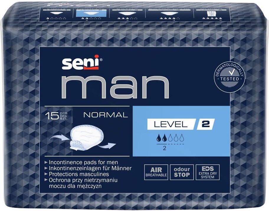 Seni Man Normal Level 2 – Wkładki urologiczne dla mężczyzn Nietrzymanie moczu to dolegliwość, z którą mierzy się wiele osób – warto wtedy zadbać o komfort i poczucie pewności na co dzień. Seni Man Normal level 2 - jeśli zdarza Ci się popuścić kilka kropel moczu podczas wysiłku …