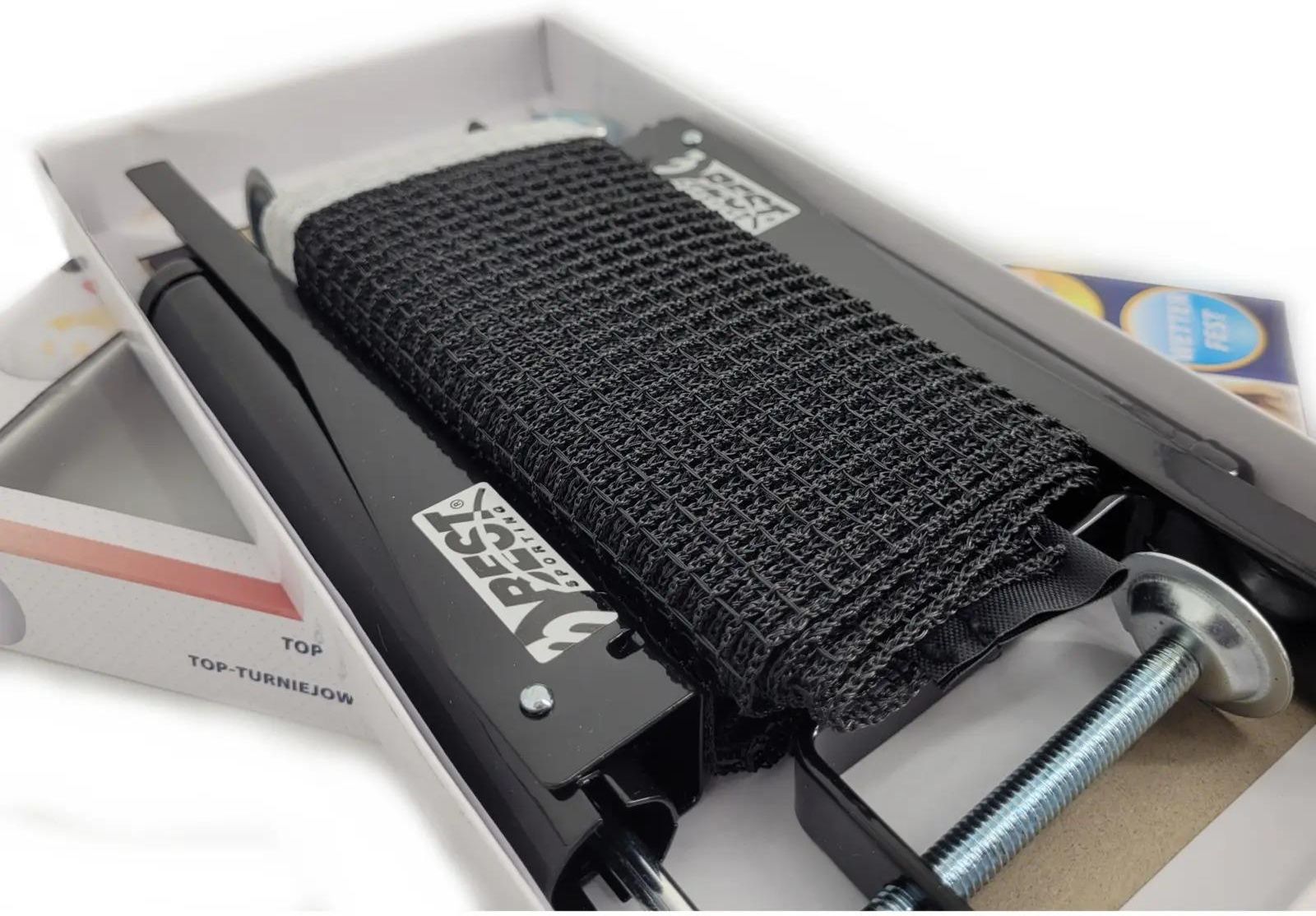 Wysokiej jakości siatka do tenisa stołowego wraz z kompletem uchwytów wyposażonych w gumy antypoślizgowe. Ich zadaniem jest ztabilizacja uchwytu oraz zabezpieczenie stoły przed zarysowaniem. [[en]] {{Table Tennis Net and Post Set}}