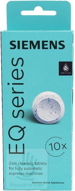 Siemens TZ80001B - 00312098 10szt Funkcje: Zawsze doskonały aromat parzonej kawy oraz dbałość o długość życia Twojego ekspresu dzięki formule 2 w 1.  Skuteczny, szybki i pewny sposób usunięcia resztek oleju z ziaren kawy. Dbaj o kondycje Twojego ekspresu.  100% dopasowanie, 100% radości dzięki zestawowi orginalnych akcesoriów dedykowanych do ekspresów automatycznych marki Siemens