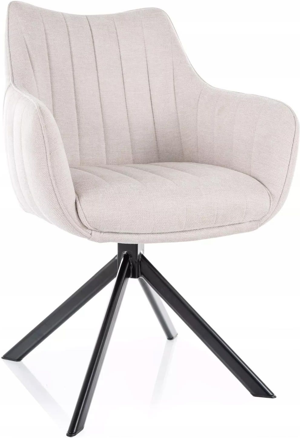 Krzesło tapicerowane obrotowe do jadalni AZALIA BREGO jasny beż/czarne Komfortowe krzesło do salonu obrotowe Krzesło Azalia Brego to nowoczesna propozycja do salonu. W tym sprytnym połączeniu wygody fotela i funkcjonalności obrotowego krzesła każdy odkryje coś dla siebie. Tapicerowanie, szykowne …
