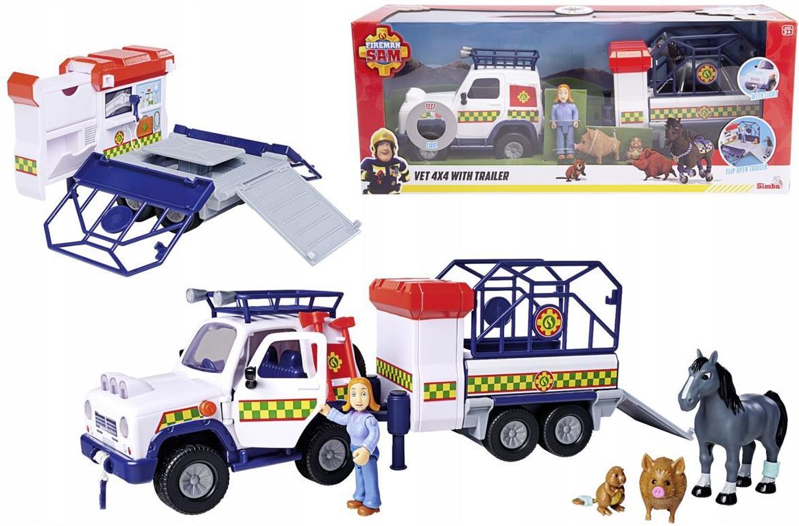 Strażak Sam Ratownictwo weterynaryjne z przyczepą Pojazd ze światłem i figurką W zestawie zwierzęta i akcesoria Klapa przyczepy otwiera się Długość pojazdu: 34 cm LICENCJONOWANA ZABAWKA STRAŻAK SAM: Samochód ratunkowy dla zwierząt z wielofunkcyjną przyczepą i wyciągarką znany z najnowszego 14 …
