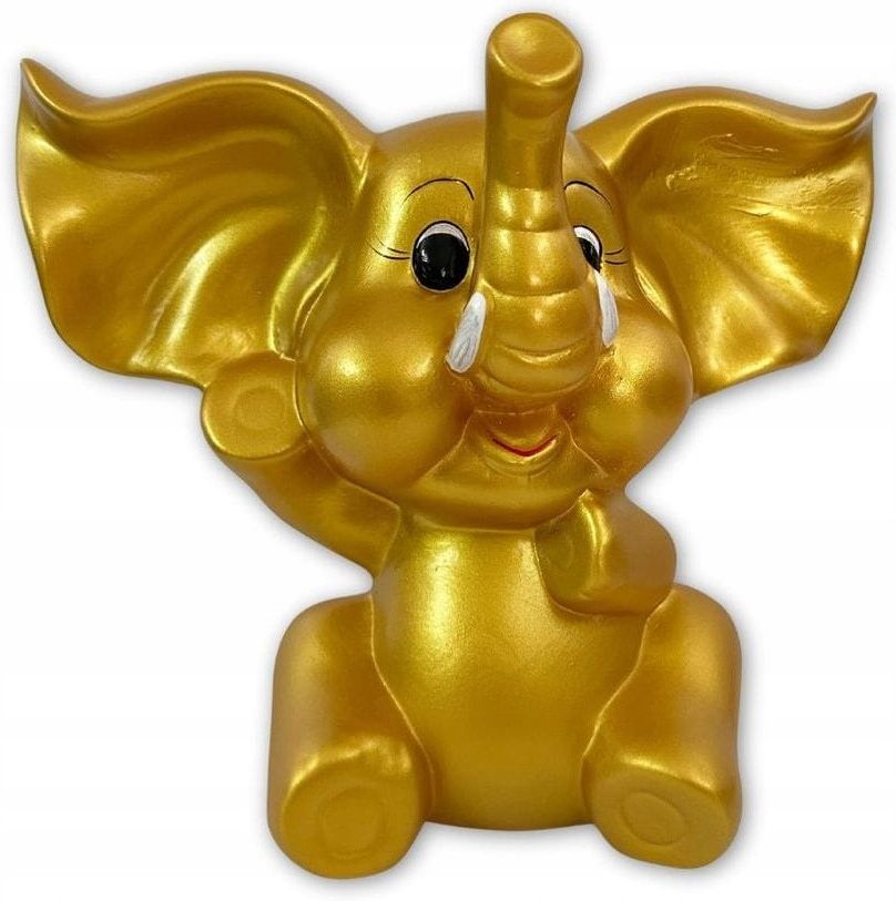 DUŻA SKARBONKA CERAMICZNA FIGURKA SŁOŃ SŁONIK ZŁOTY POLSKIEJ PRODUKCJI WYMIARY (wysokość x szerokość x długość): ok (23,5 x 29 x 13,5) cm PRZEDMIOT: NOWY OPIS: Duża skarbonka do przetrzymywania oszczędności. Wykonana z ceramiki. Słonik ma otwór - szczelinę na górze do wrzucania pieniążków. Jedynym sposobem na wyciągnięcie drobnych jest rozbicie. PRODUKT POLSKIEJ PRODUKCJI