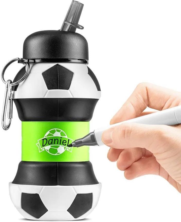 Składany Bidon Piłkarski 550 ml – Silikonowa Butelka z Ustnikiem i Karabińczykiem Dla dzieci, sportowców i wszystkich aktywnych – praktyczny, lekki i kompaktowy! Szukasz bidonu, który zmieści się w każdym plecaku, zachęci dziecko do picia wody i wyróżni się sportowym designem? Ten składany bidon z motywem piłki nożnej to strzał w dziesiątkę! ✅ Dlaczego warto? Składana konstrukcja – gdy bidon jest pusty, złożysz go do kompaktowego rozmiaru i zaoszczędzisz miejsce w torbie. Pojemność 550 ml – idealna na wodę, lemoniadę czy napój izotoniczny. Wygodny ustnik i szeroki otwór – komfortowe picie i łatwe czyszczenie. Praktyczny karabińczyk – przypnij do plecaka, torby lub spodni. Opcja personalizacji – podpisz markerem imię lub nazwę drużyny. Bezpieczny materiał – silikon bez BPA i ftalanów, dopuszczony do kontaktu z żywnością. Styl piłkarski – nowoczesny wygląd, który pokochają młodzi sportowcy. Ekologiczne rozwiązanie – wielorazowe użytkowanie = mniej plastiku. Kolorowe opakowanie prezentowe – idealny pomysł na prezent dla małego fana piłki nożnej. 🎁 Co zyskujesz? Lekki i funkcjonalny bidon do szkoły, na boisko i na wycieczki Motywację do częstszego picia wody Praktyczny prezent, który przyda się każdego dnia Sprytne rozwiązanie dla aktywnego dziecka i rodzica dbającego o środowisko ℹ️ Specyfikacja techniczna: Pojemność: 550 ml Materiał: silikon do kontaktu z żywnością, bez BPA i ftalanów Średnica: 8,5 cm Wysokość: od 11 cm (po złożeniu) do 19 cm (po rozłożeniu) Wymiary opakowania: 11 x 8,5 x 8,5 cm Dodatki: ustnik, karabińczyk, kolorowe opakowanie prezentowe
