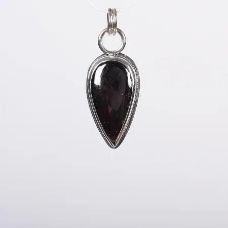 Wisior z naturalnego granatu w kształcie migdała, o głębokiej barwie, umieszczony w klasycznej srebrnej oprawie. Na rewersie wisior zdobiony jest wzorem, nadającym mu charakteru i oryginalności. Granat uznawany jest za talizman miłości, odwagi i amulet ochronny. To kamień sukcesu i siły. Jest …