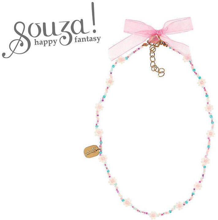 Naszyjnik Liene holenderskiej marki Souza! składa się z drobnych perełek i koralików w kolorach: białym, jaśniejszych i ciemniejszych odcieniach różowego i turkusu. Przy zapięciu ma łańcuszek z szerszymi oczkami, dzięki czemu jego długość można regulować. Naszyjnik zdobią także perłowe kwiatki, różowa tiulowa kokardka i złota zawieszka – blaszka z logo marki. Biżuteria jest lekka, delikatna, nietoksyczna i nie podrażnia skóry. Idealna zarówno na przyjęcia, jak i na co dzień. Sprawdzi się jako stylowy prezent. wiek: 3+ skład: tworzywo, żywica, tiul, metal design: Holandia wymiary opakowania: 20 x 5 x 1,5 cm O marce: Souza! to holenderska marka, oferująca przebrania i szeroki wybór akcesoriów dla dzieci. Sukienki wizytowe, kostiumy, pantofelki, peleryny, skrzydła, tiary, biżuteria, maski, korony, kapelusze, tarcze, torebki, różdżki, spinki i kosmetyki tworzą wyjątkowe radosne kolekcje. W Souza! wszystko kręci się wokół fantazji i wyjątkowego designu, nieustannie inspirowanego nieskończonymi możliwościami, jakie daje łączenie materiałów i kolorów. Wysokiej jakości tiulowe sukienki, kostiumy czy pantofelki to propozycje nie tylko na karnawał, ale również do noszenia na co dzień przez cały rok, czy przy okazji różnych uroczystości. Całości dopełniają w pełni bezpieczne, nieuczulające, wegańskie kosmetyki dla dzieci i bogata oferta ozdób do włosów, tak lubianych przez małe dziewczynki! Wejdź do dziecięcego świata fantazji z Souza!