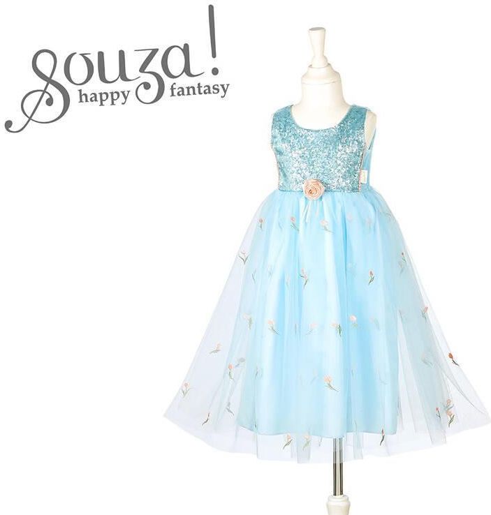 Sukienka wizytowa tiulowa Nicolette holenderskiej marki Souza! Cechy: - klasyczny krój: szerokie ramiączka + rozkloszowany dół - gumka w pasie, miękka, wsuwana przez głowę - jasnoniebieski kolor: top cekinowy na przodzie i aksamitny z tyłu, spódniczka z satynową podszewką i dwiema warstwami tiulu, zdobionego haftowanymi różowymi kwiatami Co ją wyróżnia: - kunsztowne wykonanie z dbałością o detale - tkaniny przyjemne w dotyku i komfortowe do noszenia - idealna na wszelkie przyjęcia (np. wesele czy urodziny), bale przebierańców czy Sylwestra - sprawdzi się także jako prezent wiek: 3-4 lata (98-104 cm) długość spódniczki: 48 cm wiek: 5-7 lat (110-122 cm) długość spódniczki: 58 cm wiek: 8-10 lat (128-140 cm) długość spódniczki: 68 cm skład: poliester design: Holandia wymiary opakowania: 40 x 30 x 4 cm O marce: Souza! to holenderska marka, oferująca przebrania i szeroki wybór akcesoriów dla dzieci. Sukienki wizytowe, kostiumy, pantofelki, peleryny, skrzydła, tiary, biżuteria, maski, korony, kapelusze, tarcze, torebki, różdżki, spinki i kosmetyki tworzą wyjątkowe radosne kolekcje. W Souza! wszystko kręci się wokół fantazji i wyjątkowego designu, nieustannie inspirowanego nieskończonymi możliwościami, jakie daje łączenie materiałów i kolorów. Wysokiej jakości tiulowe sukienki, kostiumy czy pantofelki to propozycje nie tylko na karnawał, ale również do noszenia na co dzień przez cały rok, czy przy okazji różnych uroczystości. Całości dopełniają w pełni bezpieczne, nieuczulające, wegańskie kosmetyki dla dzieci i bogata oferta ozdób do włosów, tak lubianych przez małe dziewczynki! Wejdź do dziecięcego świata fantazji z Souza!