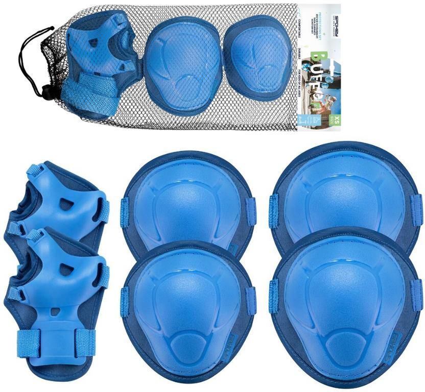 Zestaw ochraniaczy Spokey BUFFER to 3 podwójne elementy wykonane z lekkiego materiału, które chronią łokcie, nadgarstki i kolana dziecka podczas jazdy na hulajnodze, rolkach, wrotkach, łyżwach czy deskorolce, posiada elastyczne zapinanie na rzep, które pozwala na optymalne dopasowanie rozmiaru do potrzeb młodego skatera, ma anatomiczny kształt, zapewniający maksymalną swobodę ruchów. Jazda na hulajnodze, rolkach czy deskorolce to nie tylko świetna zabawa dla dzieci! To przede wszystkim niezwykłe emocje i osiąganie wysokich prędkości, którym nierzadko towarzyszą błędy, zwłaszcza u osób początkujących, które mogą skończyć się upadkami i urazami. Właśnie dlatego należy zadbać o bezpieczeństwo swoim i dzieci. Aby zminimalizować ryzyko otarć i kontuzji, warto pamiętać o zakładaniu odpowiednich ochraniaczy. Zestaw Spokey BUFFER zapewnia całościową ochronę dla młodych skaterów w postaci zabezpieczenia kolan, łokci i nadgarstków. Zadbaj o bezpieczeństwo dziecka Zestaw ochraniaczy Spokey BUFFER jest niezbędnym elementem wyposażenia każdego młodego użytkownika hulajnogi i miłośników jazdy na rolkach, wrotkach, łyżwach czy deskorolce. Składa się z 3 podwójnych elementów wykonanych z lekkiego materiału, co zapewnia ich niską wagę i jednocześnie komfort podczas aktywności oraz maksymalną swobodę ruchów. BUFFER posiadają anatomiczny kształt, który doskonale dopasowuje się do kolan, łokci i nadgarstków dziecka. Zostały wyposażone w wygodne i równocześnie trwałe zapinanie na rzep na elastycznych paskach, które można swobodnie regulować do potrzeb dziecka. Dzięki takiemu rozwiązaniu ochraniacze nie zsuwają się i zawsze pozostają na swoim miejscu. Z takim zapinaniem bez problemu poradzą sobie najmłodsi, zwłaszcza ci, którzy nie opanowali jeszcze wiązania sznurowadeł. Optymalne dopasowanie, oddychający materiał, wyprofilowany kształt Skatingowi towarzyszą niezwykłe emocje, dlatego należy pamiętać o bezpieczeństwie dzieci. Zestaw ochraniaczy Spokey BUFFER pozwala skupić się na zabawie! A do tego jest bardzo wygodny i nie krępuje ruchów–dzięki odpowiedniemu wyprofilowaniu łatwo dopasowuje się do kształtu ciała i dobrze do niego przylega. Miękka wyściółka nie tylko zapewnia komfort użytkowania, ale także przepuszcza powietrze, co pozwala skórze oddychać. Dzięki fantazyjnej, soczystej kolorystyce ochraniacze na kolana, nadgarstki i łokcie Spokey BUFFER będą idealnym uzupełnieniem wyposażenia młodego skatera. Rozmiary: XS Obwód kolana: 24-28 cm Obwód łokcia: 19-22 cm Obwód środkowej części dłoni: 20-22 cm Obwód nadgarstka: 11-13 cm S Obwód kolana: 26-30 cm Obwód łokcia: 21-24 cm Obwód środkowej części dłoni: 21-23 cm Obwód nadgarstka: 14-16 cm M Obwód kolana: 29-34 cm Obwód łokcia: 22-26 cm Obwód środkowej części dłoni: 22-24 cm Obwód nadgarstka: 16,5-18,5 cm