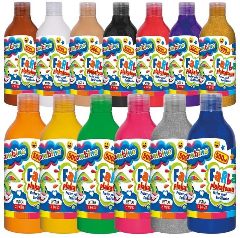 St. Majewski Bambino Farby Plakatowe Szkolne Zestaw 13 Kolorów 500ml W Butelce Katowice