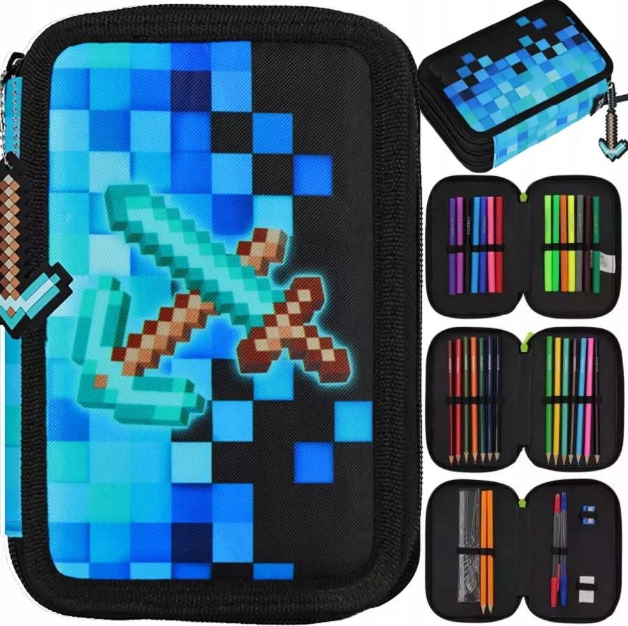 Starpak Piórnik Szkolny Trzykomorowy Potrójny Z Wyposażeniem Dla Chłopca Piksele Katowice