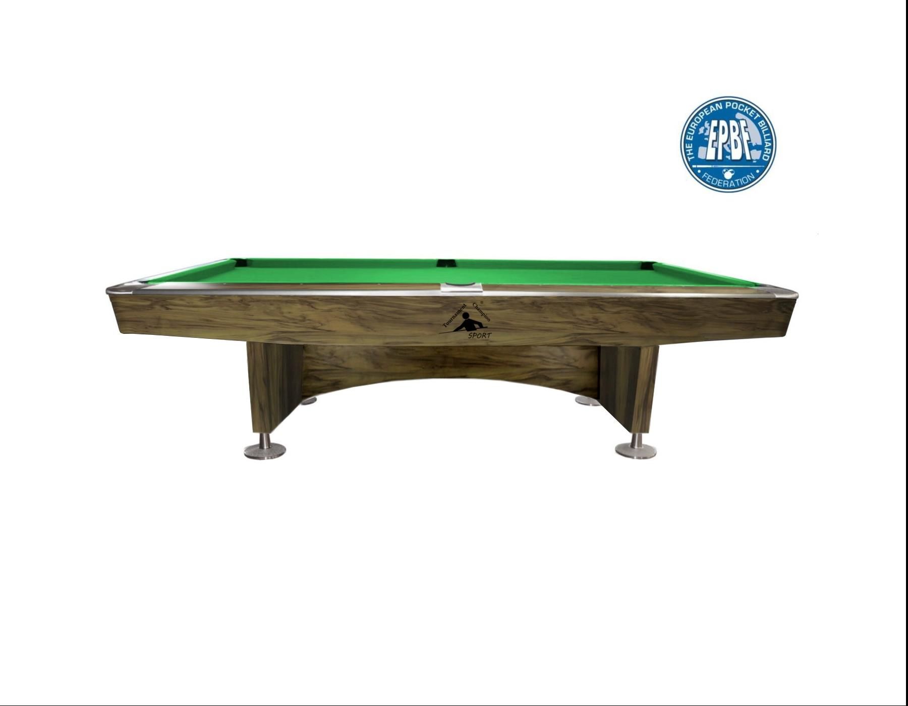 Stół Bilardowy Tournament Champion Sport 8ft FornirNOWY MODEL 2017 z oraz bandami SPEEDBALL ULTRA K-55 ! Nowoczesna technologia i eleganckie wzornictwo charakteryzują ten światowej klasy stół bilardowy. Design pasujący do każdego wnętrza, stworzony dla wymagających klientów.Re-design przeprowadzony na początku roku 2017 jest odpowiedzią na wysokie oczekiwania klientów, oraz pragnieniem zachowania świeżości i oryginalności naszego produktu.• Stół zaprojektowany z wyjątkową dbałością o szczegóły, dla najwyższego komfortu gry• Solidne metalowe narożniki • Wysokiej jakości poziomowane stopki• Dodatkowy system poziomowania płyty, gwarantujący niezrównaną dokładność• Oryginalne bandy Speedball Ultra K-55 • Doskonały zarówno do zastosowań komercyjnych, jak i użytku domowego• Konstrukcja stołu wykonana z klonu (belki), drewna kauczukowego (bandy, nogi) oraz sklejki (boki).• 3-częściowa 25mm płyta kamienna z łupka włoskiego• Pole gry: 2240 x 1120 x 37.5mm• Wymiary: 2600 x 1480 x 820mm• Wymagane miejsce: 405cm x 515cm• Pakowane w 10 kartonów, plus 3-częściowa płyta z łupka włoskiego, 365 kg• Stół spełnia normę PN-EN 350:2016-10• Cena nie obejmuje montażu i transportu.• Dedykowane sukno bilardowe SPEEDBALL®, produkowane w Polsce z najlepszej gatunkowo przędzy australijskiej - w cenie,• SuknoEuropool® 45 w cenie - do wyboru kolory: Yellow-Green, English-Green, Burgund, Champion-Blue, Royal Blue, Blue Green, Black, Purple, Fushia, Petroleum Blue, Greylub Slate Grey Cena nie obejmuje montażu i transportu.Sukno Simonis 860 za dopłatą. [[en]] {{Tournament Champion Table Sport 8ft fornir}}