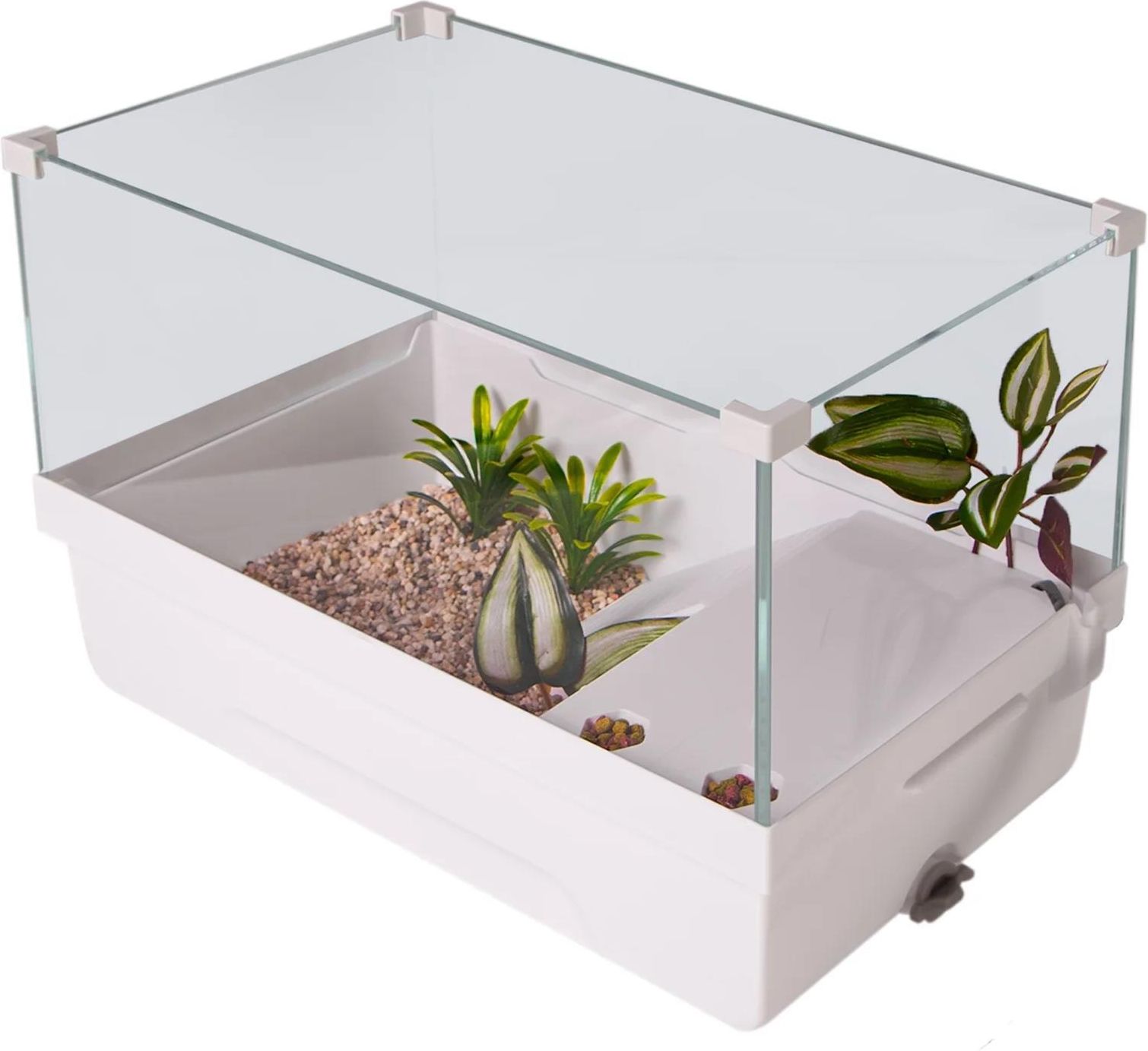 Akwarium, terrarium - akwa-terrarium dla żółwia wodno-lądowego. Turtle Water Box to zestaw "wszystko w jednym". Stanowi kompletne wyposażenie niezbędnych produktów takich jak: akwarium, wyspa dla żółwia, filtr wody dla żółwi i rampa. Kupując ten zestaw otrzymasz wszystko co potrzeba do hodowli …