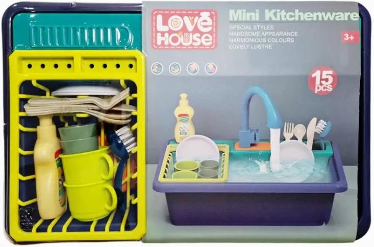 Zestaw zlewozmywak z obiegiem wody i akcesoriami kuchennymi. W komplecie 15 elementów, w tym kubeczki, sztućce, talerze i akcesoria do zmywania. Produkt działa na baterie AA. Baterie nie są załączone do zabawki. Zabawka przeznaczona dla dzieci od lat 3. Produkt zapakowany w kartonową przekładkę i …