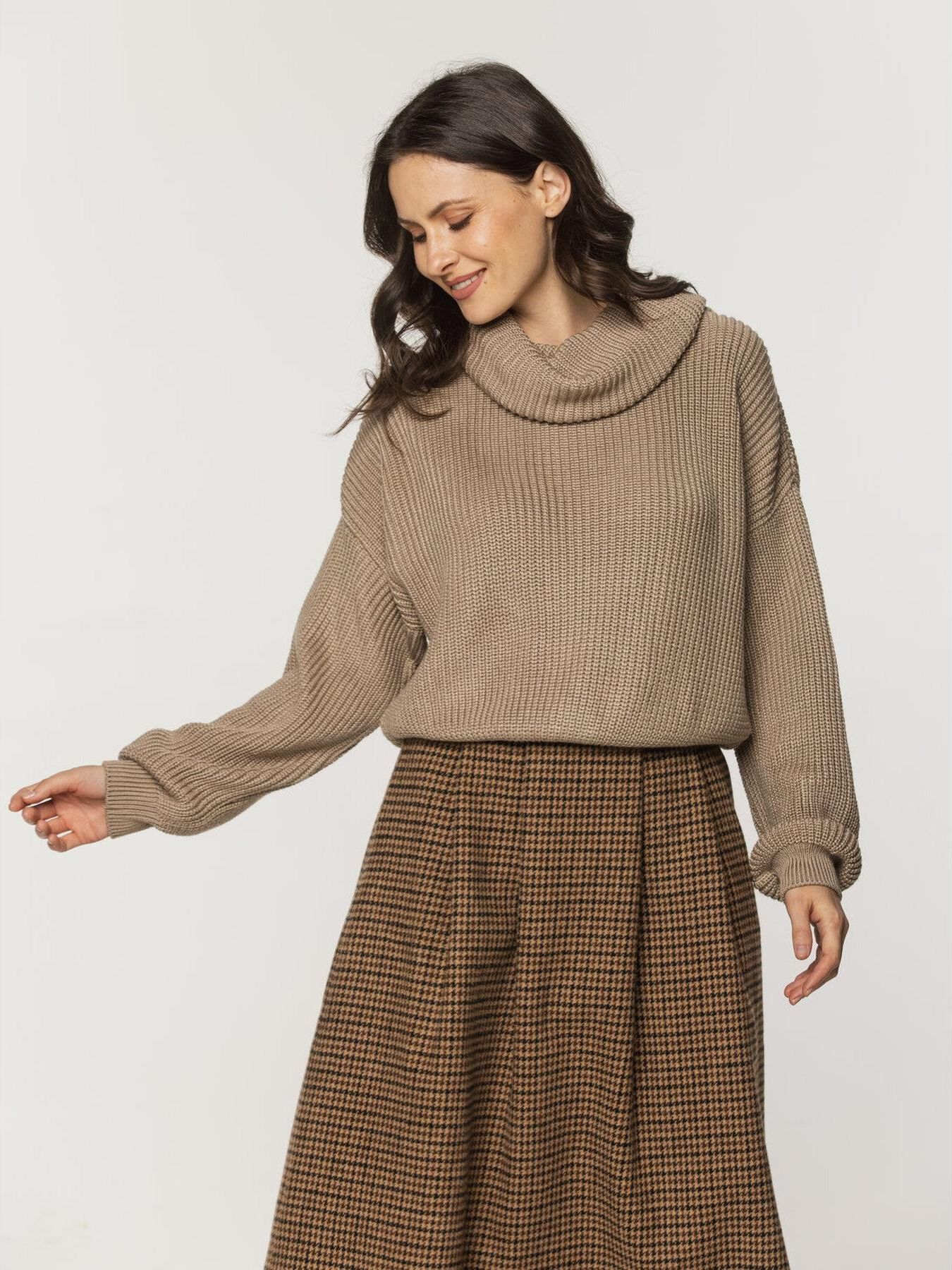 Ziemisty sweter o grubym, mięsistym splocie i dekolcie typu woda, 100% wiskoza bambusowa