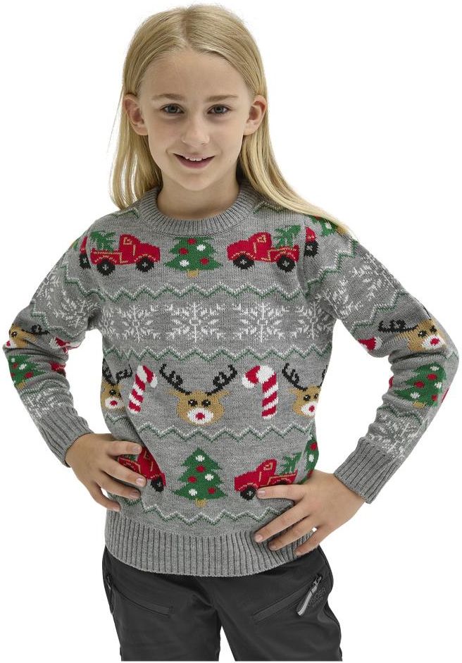 Dzianinowy sweter świąteczny wykonany w 100% z akrylu, który jest ciepły i miękki. Ozdobiony zabawnym motywem.