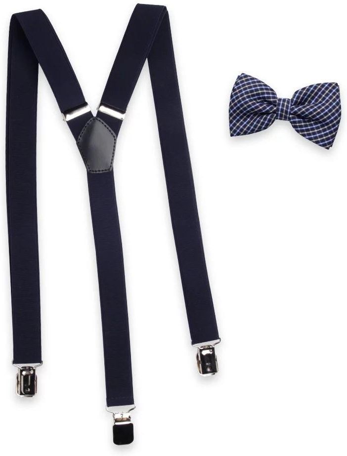 Szelki męskie i mucha Zestaw składający się z szelek męskich wykonanych z tkanej gumy galanteryjnej o szerokości 2,7 cm oraz muchy bawełnianej. Zapinki szelek z mocowaniami i guma połączone są wysokiej jakości są skórą. Metalowe żabki poprawiają ścisk. Stylowo zapakowane stanowią idealny prezent dla eleganckiego i stylowego mężczyzny z charakterem. Kolor szelek: granatowa guma galanteryjna, granatowa skóra Kolor muchy: granatowa w szarą kratkę Zapięcie szelek: na żabki Szerokość szelek: 2,7 cm Długość: 80-120 cm dla typowej sylwetki Materiał: elastyczna guma galanteryjna Jakość: pierwsza Producent: Willsoor Gwarancja: 24 m-ce