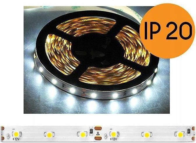 Taśma LED ECO IP20 zimne białe 300 diod 5m Ilość diod 300 Rodzaj diod SMD2835 Podłoże Białe Barwa światła Zimna biała Długość 5 m Szerokość 8 mm Napięcie zasilania 12 V DC Moc 4,8 W/m - 24 W / 5 m Długość jednego modułu 5 cm Żywotność 50000 godzin Wodoodporny NIE Stopień ochrony IP 20 Elastyczna taśma LED – to jeden z najbardziej uniwersalnych modułów LED. Szerokie zastosowanie oraz łatwość montażu pozwalają na praktycznie nie ograniczone zastosowanie. Miniaturowe wymiary umożliwiają wklejenie taśmy LED praktycznie wszędzie. Taśma LED podklejona jest dwustronną taśmą samoprzylepną, która pozwala na montaż na wielu podłożach, także bezpośrednio na ścianie. Taśma LED przeznaczona jest do pracy wewnątrz pomieszczeń. Cechy produktu: Fabrycznie nowa, wysokiej jakości taśma LED do podświetlania I dekorowania wszelkiego rodzaju przedmiotów/obiektów Dzięki zastosowaniu napięcia stałego 12V, taśmę można zastosować również w samochodzie Bez problemu można nią wykonać efektowne podświetlenie reklamy, ułożyć świecące napisy itp. Diody LED umieszczone są na elastycznej taśmie samoprzylepnej ułatwiające jej montaż Metr taśmy pobiera około 4.8W energii, więc oświetlenie jest bardzo energooszczędne Zastosowanie: Reklama – znaki świetlne, litery przestrzenne, napisy, znaki, logo wykonane jako trójwymiarowe, bryły podświetlane od wewnątrz układami z wysokowydajnymi diodami świecącymi LED dają efektywny, czytelny, zwracający na siebie uwagę element informacyjny. Rozświetlenie diodami, w przeciwieństwie do neonów lub świetlówek, daje, oprócz innych zalet, jasna, równomierną powierzchnię świecącą. Samochód – Tuning wewnętrzny Oświetlenie wyjść ewakuacyjnych I symboli ułatwiających orientację Oświetlenie bezpieczeństwa Oświetlenie gzymsów, wnęk, faset, schodów,luster, mebli, szklanych blatów Oświetlenie opraw meblowych pod szafki I półki