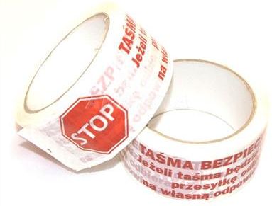 TAŚMA BEZPIECZEŃSTWA Z NADRUKIEM:"Jeżeli taśma bedzie naruszona, przesyłkę odbierasz na własna odpowiedzialność."Taśma jest doskonałym sposobem zabezpieczenia zawartości paczki przed niewłaściwym traktowaniem przesyłek przez firmy kurierskie i pracowników poczty.Długość: 66mSzerokość: 48 mmKlej …