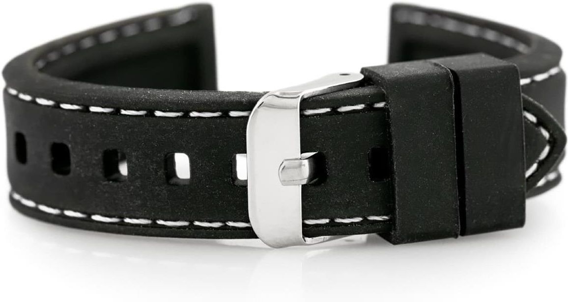 Tayma Pasek gumowy do zegarka - przeszywany czarny/białe 20mm (TAYMA10372) Katowice