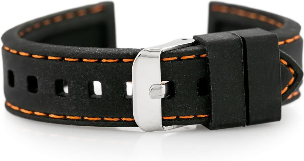 Tayma Pasek gumowy do zegarka - przeszywany czarny/pomarańczowe 18mm (TAYMA10375) Katowice