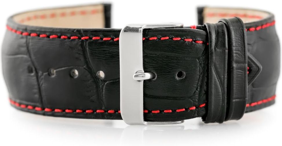 Tayma Pasek skórzany do zegarka W64 czarny/czerwony 24mm (TAYMA10141) Katowice