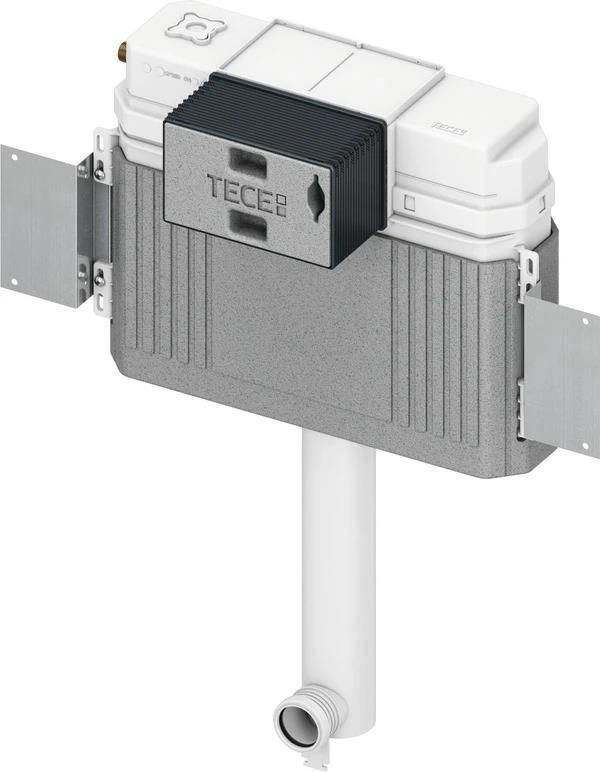 TECE spłuczka Uni z płytą montażową, wysokość montażowa 1060 mm Spłuczka Uni do montażu w surowej ścianie, z instalacją przycisków spłukujących „easy fit” Spłuczka Uni uruchamiana z przodu: bezpieczny zbiornik z tworzywa odpornego na uderzanie, przetestowany zgodnie z normą EN 14055 kompletnie zmontowana i zaizolowana spłuczka. przyłącze spłuczki z gwintem zewnętrznym R 1/2", kompatybilne z szybkimi adapterami pojemność zbiornika 10 litrów; standardowe ustawienie ilości spłukiwanej wody 6 litrów, opcjonalnie możliwość ustawienia ilości spłukiwanej wody 4,5/7,5/9 litrów; w systemie spłukiwania dwoma ilościami wody możliwość spłukiwania 3 litrami; pozostała ilość wody do natychmiastowego spłukiwania czyszczącego. izolacja przeciw skraplaniu wody do przycisków spłukujących do WC, elektroniki spłukującej i armatury WC możliwość zastosowania spłuczki do spłukiwania pojedyńczego lub dwoma ilościami wody instalacja przycisków spłukujących „easy fit” tunel montażowy do otworu rewizyjnego może zostać skrócony bez użycia narzędzi cichy hydrauliczny zawór napełniający, 1 grupa akustyczna zgodnie z DIN 4109 - certyfikat P-IX3837/I z płytą montażową i materiałami montażowymi kolano rury spłukującej z zestawem przyłączeniowym do toalet stojących z rozetą euro Należy zamawiać oddzielnie: przycisk spłukujący do WC (patrz przyciski spłukujące) płytkę maskującą z koszem na kostki czyszczące (opcja)