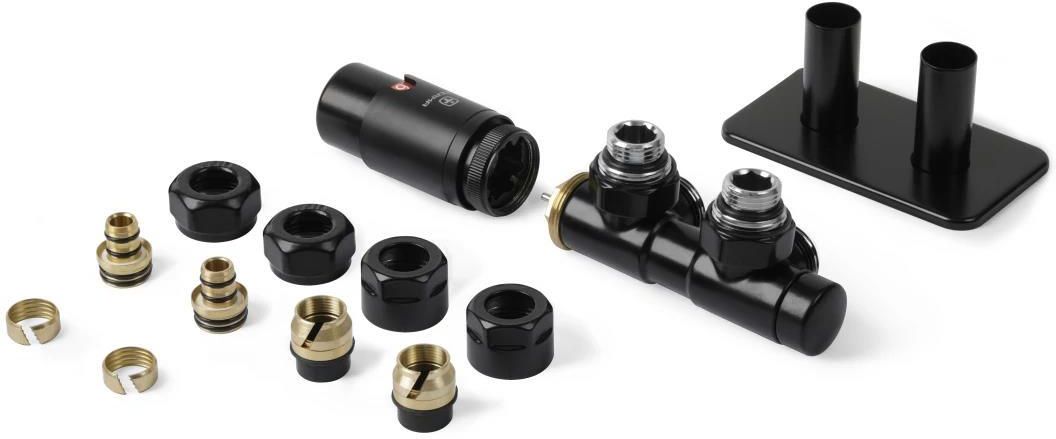 Terma Zestaw Termostatyczny Twins 50Mm 1/2 Kątowy Lewy Czarny Mat (Tgetcm008) Akcesoria grzewcze odgrywają kluczową rolę w każdym systemie ogrzewania, wpływając na jego efektywność oraz bezpieczeństwo użytkowania. Właściwy wybór tych elementów jest niezbędny, aby zapewnić komfort cieplny w pomieszczeniach. Ten produkt łączy funkcjonalność z nowoczesnym wyglądem, co czyni go atrakcyjnym rozwiązaniem dla każdego wnętrza. Typ akcesorium Ten zestaw zawiera wszystkie niezbędne elementy do prawidłowego podłączenia grzejnika. W skład zestawu wchodzą: zawór zintegrowany termostatyczny, głowica termostatyczna M30 x 1.5, zestaw maskujący, dwa adaptery PEX i ALU-PEX o średnicy 16x2, dwa adaptery CU Ø 15. Zawór kątowy, dostępny w wersji lewej, został zaprojektowany z myślą o zgodności z kierunkiem zasilania i powrotu czynnika grzewczego, co ułatwia jego montaż w ograniczonej przestrzeni. Materiał wykonania Produkt wykonany jest z wysokiej jakości materiałów, takich jak stal nierdzewna i miedź, co zapewnia jego trwałość oraz odporność na korozję. Czarny matowy kolor (RAL 9005 mat) nadaje mu nowoczesny wygląd, a jednocześnie jest łatwy w utrzymaniu czystości. Wymiary Akcesoria zostały zaprojektowane z myślą o standardowych instalacjach. Rozstaw przyłącza wynoszący 50 mm sprawia, że elementy te pasują do większości grzejników dostępnych na rynku. Precyzyjne wymiary komponentów ułatwiają montaż oraz zapewniają efektywność działania całego systemu grzewczego. Moc i napięcie Ten produkt jest dostosowany do standardowych warunków pracy, co oznacza, że działa z typowymi wartościami mocy i napięcia, odpowiednimi dla większości systemów grzewczych. Użytkownicy mogą być pewni, że jego działanie będzie efektywne, co przekłada się na komfort cieplny w pomieszczeniach. Funkcje dodatkowe Wbudowany termometr pozwala na precyzyjne sterowanie temperaturą w pomieszczeniu, co sprzyja oszczędnościom w zużyciu energii. Zawór termostatyczny z zabezpieczeniem przed przegrzaniem zwiększa bezpieczeństwo użytkowania. Możliwość regulacji mocy oraz wygodna obsługa sprawiają, że akcesoria są przyjazne dla użytkowników, niezależnie od ich doświadczenia. Montaż Montaż tego zestawu jest prosty i intuicyjny, co jest istotne dla osób, które preferują samodzielne instalacje. Produkt przeznaczony jest do montażu natynkowego, co umożliwia łatwe podłączenie do grzejnika w różnych warunkach. Waga produktu Akcesoria charakteryzują się lekkością, co upraszcza transport oraz instalację. Optymalizacja wagi komponentów pozwala na łatwe zamontowanie ich w każdym wnętrzu.