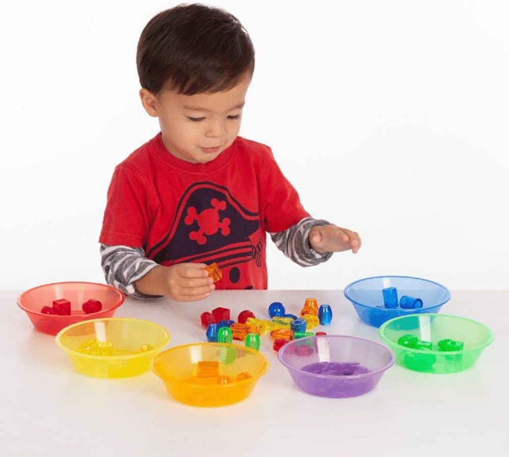 Dla kogo? Transparentne miseczki to ciekawy pomysł na przeprowadzenie zajęć i zabaw w zakresie rozpoznawania kolorów i kształtów już od 18 miesiąca życia. Można je stosować nie tylko w domu ale również w trakcie ćwiczeń terapeutycznych w gabinecie, czy przedszkolu. Zabawka pobudzi wyobraźnię …
