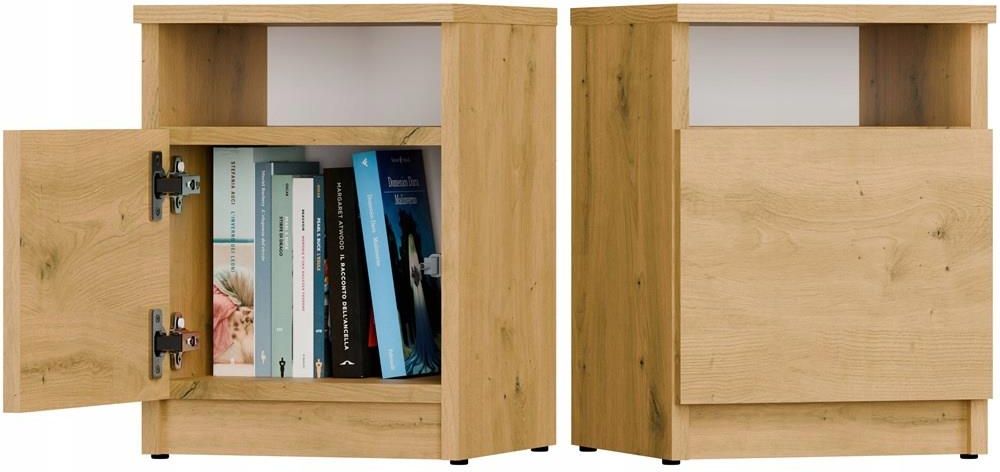 Szafka nocna GALAX 30/1D - Dąb artisan, nowoczesny stolik nocny NOWOCZESNA SZAFKA NOCNA / STOLIK NOCNY Z DRZWIAMI SERIA: GALAXMODEL: GALAX 30 1DKOLOR: Dąb artisan Szafka nocna GALAX 30 1D to praktyczne i estetyczne uzupełnienie każdej sypialni. Wyposażona w otwartą półkę oraz zamkniętą przestrzeń za drzwiami, doskonale sprawdzi się jako miejsce na książkę, telefon, ładowarkę czy inne przedmioty, które warto mieć zawsze pod ręką. Blat szafki to idealne miejsce na lampkę nocną, budzik lub dekoracyjne dodatki. Klasyczny kolor mebla dodaje wnętrzu świeżości i lekkości, jednocześnie pasując zarówno do nowoczesnych, jak i tradycyjnych aranżacji. GŁÓWNE CECHY MEBLA: Półka otwarta oraz zamknięta za drzwiami: idealne do przechowywania najpotrzebniejszych rzeczy, takich jak telefon, ładowarka, książka czy okulary. Elegancki kolor: uniwersalny i pasujący do każdego wnętrza Bezuchwytowe fronty: zapewniają wygodę użytkowania i nadają meblowi nowoczesny, minimalistyczny wygląd. Front otwierany systemem TIP-ON: wystarczy nacisnąć na front drzwi Solidne wykonanie: staranne wykończenie i wysokiej jakości materiały gwarantują trwałość mebla. Gładkie boki bez zaślepek: estetyczna konstrukcja dzięki nowoczesnemu systemowi okuć. Polska produkcja: gwarancja jakości i dbałości o detale MATERIAŁ Korpus i front - płyta wiórowa laminowana o grubości 16 mm. Zawiasy - metalowe, klasyczne, umożliwiające wygodne otwieranie drzwiczek WYMIARY Głębokość: 30 cm Szerokość: 30 cm Wysokość: 40 cm Użytkowanie: Powierzchnię mebla czyścić przy pomocy miękkiej szmatki. Unikać stosowania silnie działających środków chemicznych. W opakowaniu: Instrukcja montażu wraz ze wszystkimi potrzebnymi akcesoriami montażowymi. Meble są fabrycznie zapakowane do samodzielnego montażu. Informacja: Dokładamy wszelkich starań, aby kolory mebli prezentowane na zdjęciach były odwzorowane możliwie jak najdokładniej. Należy jednak pamiętać, że ich odbiór może się różnić w zależności od indywidualnych ustawień monitora lub ekranu (takich jak jasność, kontrast, temperatura barwowa czy technologia wyświetlania). Rzeczywisty odcień produktu może się także różnić w zależności od warunków oświetleniowych.Ewentualne różnice kolorystyczne nie wynikają z wady produktu.