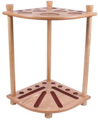 Stojak narożny 8 kijów buk Stojak na 8 kijów, kolor: buk. Producent: Tournament Champion Kod producenta: ET8765 EAN: 5902553401226 Kolor/Wzór: buk Stan: Nowy, oryginalny produkt Stojak narożny 8 kijów kolor: buk Stojak narożny na 8 kijów, to jeden z najbardziej funkcjonalnych i praktycznych stojaków. Mimo niewielkich wymiarów zajmuje stosunkowo mało miejsca, a dodatkowo może służyć jak stolik, a także możemy trzymać na nim bile. Na górnej półce mamy 5 wklejonych korkowych podkładek, które mogą służyć np. pod 4 szklanki i karafkę. Na dolnej możemy ułożyć komplet bil. Wymiary: - wysokość 54,5 cm - szerokość 35,5 cm