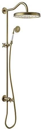 TRES CLASIC EXCLUSIVE zestaw natryskowy z deszczownicą, mosiądz antyczny matowy Gwarancja Producent udziela 5-letniej gwarancji na baterie oraz 2 lata na pozostałe elementy. Główne cechy: - kolor: mosiądz antyczny matowy - rodzaj: natryskowy - typ: jednuchwytowa - montaż: naścienny - deszczownica obrotowa - obrotowy i przesuwny uchwyt do słuchawki prysznicowej - inwersor wbudowany w drążku prysznicowym - przyłącze wody w ścianie Dane techniczne: - średnica deszczownicy: 310 mm - średnica przyłącza: 1/2" W zestawie znajduje się deszczownica, drążek, wąż oraz rączka natrysku. Brak baterii.