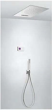 Zestaw elektronicznej baterii termostatycznej podtynkowej 3-drożnej Shower Technology Blue Edition prysznicowe Biały elektroniczny sterownik z uszczelkami przeciwwilgociowymi firmy Schlüter: Jest to biały sterownik elektroniczny, który posiada uszczelki przeciwwilgociowe. Służy do zarządzania różnymi funkcjami prysznica i zapewnia ochronę przed wilgocią. Elektroniczna centralka termostatyczna (3-drożna): Jest to urządzenie termostatyczne, które reguluje temperaturę wody w prysznicu. Posiada funkcję trójdrogową, co oznacza, że kontroluje przepływ wody między trzema różnymi punktami: deszczownicą, natryskiem ręcznym i ewentualnie innym źródłem wody, takim jak bateria wannowa. Deszczownica naścienna ze stali nierdzewnej z 2 rodzajami strumienia (deszcz/kaskada): To deszczownica montowana na ścianie, wykonana ze stali nierdzewnej. Ma wymiary 500x650 mm i oferuje 2 rodzaje strumienia wody: deszczowy i kaskadowy. Można wybrać preferowany strumień w zależności od upodobań. WAŻNE: Zamontować spust >50 l/min: Wskazane jest zastosowanie spustu o przepustowości większej niż 50 litrów na minutę. Spust to element odprowadzający wodę z deszczownicy, a jego wydajność powinna być odpowiednio dopasowana do strumienia wody z deszczownicy. Uchwyt do słuchawki prysznicowej z przyłączem w ścianie: Ten uchwyt montuje się na ścianie i służy do zawieszenia słuchawki prysznicowej. Posiada przyłącze, które umożliwia podłączenie węża prysznicowego. Słuchawka prysznicowa z mosiądzu z systemem zapobiegającym osadzaniu się kamienia: Jest to słuchawka prysznicowa wykonana z mosiądzu, która posiada specjalny system zapobiegający osadzaniu się kamienia na powierzchni słuchawki. Dzięki temu utrzymanie czystości słuchawki jest łatwiejsze. Satynowy wąż: To elastyczny wąż prysznicowy o satynowym wykończeniu. Służy do podłączenia słuchawki prysznicowej do uchwytu na ścianie lub do innych elementów instalacji. Certyfikat BELGAQUA (Belgique): Jest to certyfikat wydany przez organizację BELGAQUA w Belgii. Może potwierdzać, że dany produkt lub system spełnia określone normy i wymagania dotyczące jakości wody lub innych parametrów. Natrysk ręczny z mosiądzu: To dodatkowy natrysk do prysznica wykonany z mosiądzu. Może być używany zamiast deszczownicy lub równocześnie z nią. Sitko ze stali nierdzewnej: Jest to sitko umieszczone na wylocie wody w prysznicu. Jego zadaniem jest zatrzymywanie zanieczyszczeń i drobnych cząstek, zapobiegając ich przedostawaniu się do natrysku. Wykończenie Chrom: Oznacza, że elementy zestawu posiadają powłokę chromową, co nadaje im estetyczny wygląd i chroni przed korozją. Zasilanie elektryczne: Oznacza, że niektóre elementy zestawu wymagają podłączenia do źródła zasilania elektrycznego, co może być konieczne do ich prawidłowego działania.