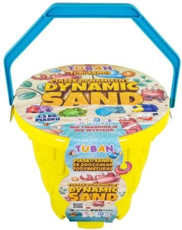 3551 Tuban Piasek dynamiczny - Zestaw Plaża z wiaderkiemZESTAW PIASEK DYNAMICZNY – PLAŻA idealnie nadaje się do ćwiczenia małej motoryki: przesypuje się, ale się nie rozsypuje i pozwala się dowolnie formować. Zabawa nim wpływa na rozwój kreatywnego myślenia i wyobraźnię dziecka, wycisza i działa odstresowująco. Angażuje je do twórczego działania, pobudzając tym samym ich wyobraźnię i rozwijając kreatywność. Piasek jest bezpieczny w zabawie. Nie twardnieje i nie wysycha, dzięki czemu można się nim bawić wielokrotnie przez długi czas. Zestaw zawiera: wiaderko, foremki (4 szt.), 4 × 200g piasek kolor: różowy,niebieski,zielony,fioletowy 1 × 700 piasek naturalny. Rozmiar opakowania: 22,5 x 18,5 x 21,5 cmWiek: 3+WAŻNE:Produkty są bezpieczne dla dzieci. Nie zawierają substancji toksycznych. Składniki wchodzące w skład zestawu zostały przebadane i posiadają wszystkie niezbędne certyfikaty bezpieczeństwa.WYPRODUKOWANO W POLSCE.OSTRZEŻENIE: Nie nadaje się dla dzieci w wieku poniżej 36 miesięcy. Ryzyko zadławienia piaskiem możliwym do połknięcia. Do używania pod nadzorem osoby dorosłej. Nie nadaje się do spożycia. W PRZYPADKU POŁKNIĘCIA: wypłukać usta. NIE wywoływać wymiotów. Unikać kontaktu z oczami. W PRZYPADKU DOSTANIA SIĘ DO OCZU: Ostrożnie płukać wodą przez kilka minut. Wyjąć soczewki kontaktowe, jeżeli są i można je łatwo usunąć. Nadal płukać. W razie konieczności zasięgnięcia porady lekarza należy pokazać pojemnik lub etykietę. Dokładnie umyć ręce po użyciu. Opakowanie nie jest zabawką. Może pozostawiać plamy. Zabawki są wyróżniane i nagradzane w Polsce i zagranicą. Tuban to polski producent kreatywnych zabawek i produktów sensorycznych dla dzieci. Na rynku od 2009 roku, specjalizując się m.in. w płynach do dużych baniek, slime’ach, masach plastycznych i kosmetykach dziecięcych. Produkty firmy TUBAN powstają w Polsce i spełniają najwyższe normy bezpieczeństwa. Produkty TUBAN powstają w Polsce i posiadają niezbędne certyfikaty bezpieczeństwa. Zostały docenione nie tylko u nas, ale też w 28 innych krajach świata, w tym między innymi w ZEA, RPA, Chile czy Gwatemali.