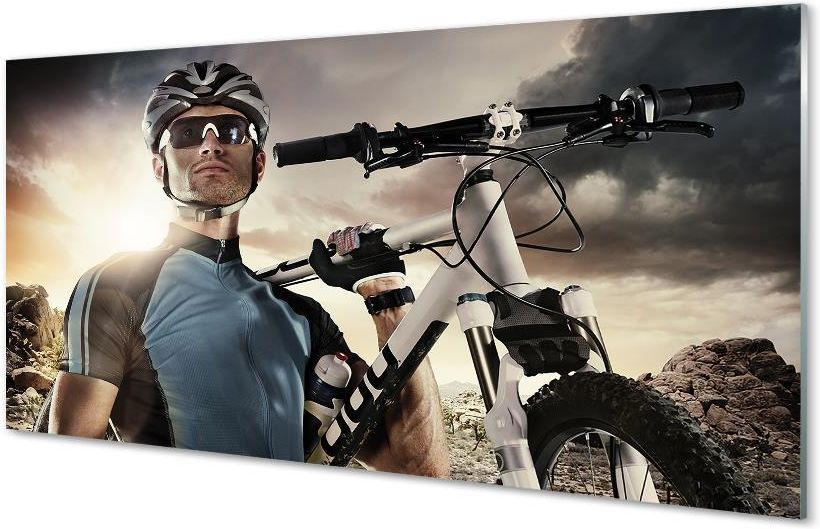 Tulup.Pl Obraz akrylowy Rowerzysta rower chmury 120x60 cm 4 zawieszki (OAH74986884) Katowice