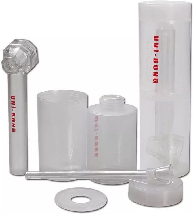UNI-BONG KIT przenośne bongo w tubie Przenośny zestaw UNI-BONG KIT do stworzenia bonga. Wykonany z plastiku i borokrzemowego szkła. Idealny w plener i na imprezę.