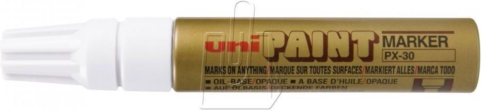 MARKER olejowy do szkła metalu plastiku drewna ZŁOTY Uni PX30 gruby 8.5mm UNI Profesjonalny marker olejowy UNI do znakowania wszystkich powierzchni: szorstkich, gładkich i tłustych metal, szkło, kamień, plastik, styropian, drewno . Wodoodporny, nie traci koloru pod wpływem światła i ekstremalnych …