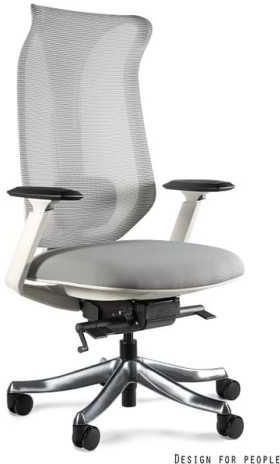 Unique - jako firma rozumiemy, że zadowolenie Klienta zawsze musi być najważniejszeDlatego w naszej ofercie znalazły się meble łączące urzekający design, nowoczesną stylistykę i estetykę wykonania, co w żadnym razie nie oznacza kompromisów co do trwałości. Meble biurowe i wszystkie inne meble naszej firmy są solidne i wytrzymałe, a ich cechą jest niezmiennie ponadczasowość. Znakiem rozpoznawczym mebli UNIQUE jest połączenie klasycznej elegancji z prostotą formy. W ten sposób jesteśmy w stanie pomóc w tworzeniu funkcjonalnych wnętrz z charakterem - niezależnie od tego, czy Klient preferuje estetykę nowoczesną czy klasyczną. Funkcjonalność i ergonomiczność naszych mebli w połączeniu z dbałością o detale umożliwia tworzenie unikalnych wnętrz podkreślających prestiż ich użytkowników. Właściwości fotela: mechanizm odchylania SYNCHRON; podstawa jezdna wykonana z wysokiej jakości polerowanego aluminium; oparcie wykonane z wysokiej jakości siatki materiałowej przepuszczającej powietrze; siedzisko wykonane z wysokiej jakości tkaniny materiałowej; podłokietniki wykonane z wysokiej jakości tworzywa sztucznego; oparcie z wyprofilowaniem lędźwiowym zapewniającym prawidłową postawę; stelaż wykonany z najwyższej jakości tworzywa sztucznego; nowoczesne wzornictwo; spełnia normy: PN-EN 1335-2:2019PN-EN 1022:2019PN-EN 1728:2012/AC:2013. Regulacja fotela: wysokość siedziska; wysokość oparcia; głębokość siedziska; wysokość podłokietników; szerokość rozstawu podłokietników; wychylenie podłokietników w przód oraz tył; wysokość wsparcia dla kręgów lędźwiowych; możliwość swobodnego kołysania się; możliwość blokady siedziska i oparcia w dowolnej pozycji. Mechanizm SYNCHRONMechanizm, który pozwala na jednoczesne odchylanie oparcia i siedziska w określonej proporcji tak, by kąt między nimi ulegał zmianie. Dzięki swojemu zaawansowaniu technicznemu pozwala dopasować wszystkie parametry fotela do sylwetki, wzrostu i wagi użytkownika. Fotel z mechanizmem tego typu daje także możliwość swobodnego bujania się, zmiany pozycji i kąta ustawienia kręgosłupa, co zmniejsza działające na niego obciążenie oraz niekorzystne wpływy pozycji siedzącej. Mechanizm ten szczególnie polecany jest osobom spędzającym wiele godzin w pozycji siedzącej, zwłaszcza przed monitorem. Sterowanie mechanizmem odbywa się za pomocą: dźwigni połączonej z podnośnikiem pneumatycznym, która umożliwia opuszczanie i podnoszenie siedziska; dźwigni synchronicznej, która reguluje kąt odchylenia siedziska i oparcia i umożliwia blokowanie ustalonej pozycji; śruby, która reguluje siłę odchylenia fotela w zależności od ciężaru siedzącego. Jak dbać o mebel?Przecieraj go wilgotną szmatką z łagodnym środkiem myjącym. UwagaDo mebla dołączona jest szczegółowa instrukcja oraz wyposażenie niezbędne do jego montażu.
