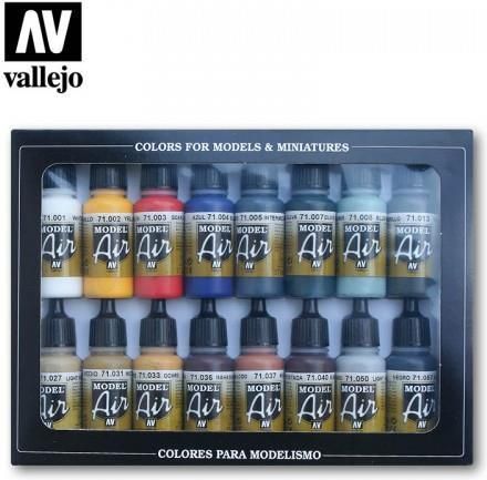 Model Air to seria matowych farb akrylowych na bazie wody, opracowanych specjalnie do nakładania przy pomocy aerografu. Gama Model Air zawiera najbardziej kompletny wybór kolorów wojskowych. Każdy odcień jest oparty na szeroko zakrojonych badaniach ekspertów nad istniejącymi i historycznymi odniesieniami wojskowymi, by zaoferować najwyższą możliwą dokładność historyczną. Farb Model Air można używać bezpośrednio lub po rozcieńczeniu przy pomocy Airbrush Thinner lub Flow Improver. Zaleca się nakładanie produktu na wcześniej spodkładowaną powierzchnię, w kilku cienkich warstwach. Preparaty schną bardzo szybko, tworząc jednolitą warstwę o niezwykłej odporności, z zachowaniem najdrobniejszych nawet detali. Farby Model Air zamknięte są w wygodnych butelkach o pojemności 17 ml, wyposażonych w wygodny zakraplacz zapobiegający parowaniu i wysychaniu preparatu, dzięki czemu zachowa on swoje właściwości na długi czas! Producent/osoba odpowiedzialna za bezpieczeństwo produktuACRYLICOS VALLEJO, S.L.U.Eusebio Millan, 1408800 Vilanova i la Geltrúquimico@acrylicosvallejo.com