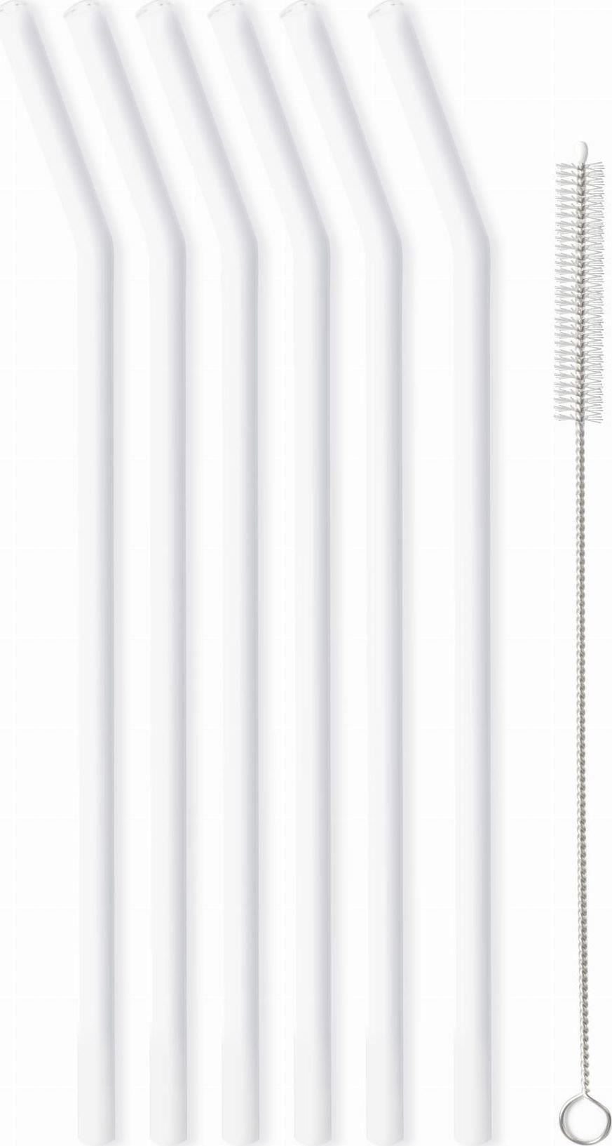 Vialli Design Słomki Szklane Białe Zakrzywione 23Cm 6Szt Ze Szczoteczką (26643) Katowice