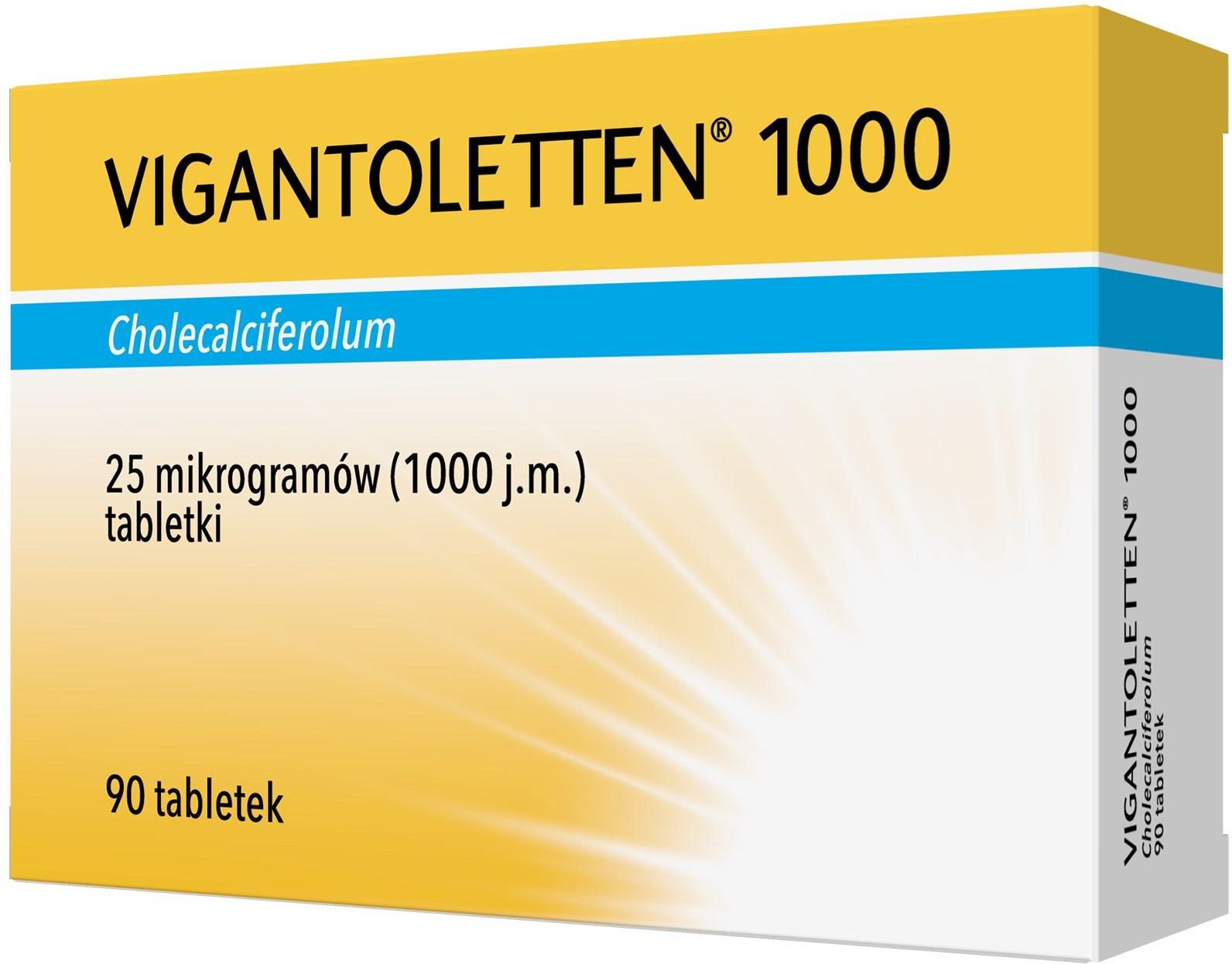 Vigantoletten 1000 j.m. 90 tabl Vigantoletten 1000 to lek w postaci tabletek, którego substancją czynną jest ważna w procesie tworzenia kości witamina D (cholekalcyferol). Każda tabletka produktu leczniczego zawiera 25 μg witaminy D, co odpowiada 1000 j.m. Tabletki z witaminą D Vigantoletten 1000 …