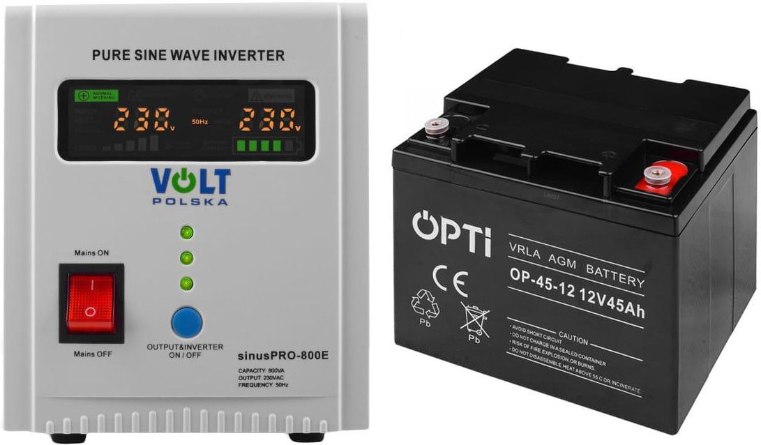 Volt Polska Zestaw Volt Sinus Pro 800 E 800VA/500W + akumulator Volt OPTI VRLA AGM 12V 45Ah (3SP080012E+6AKUV045AG) Katowice