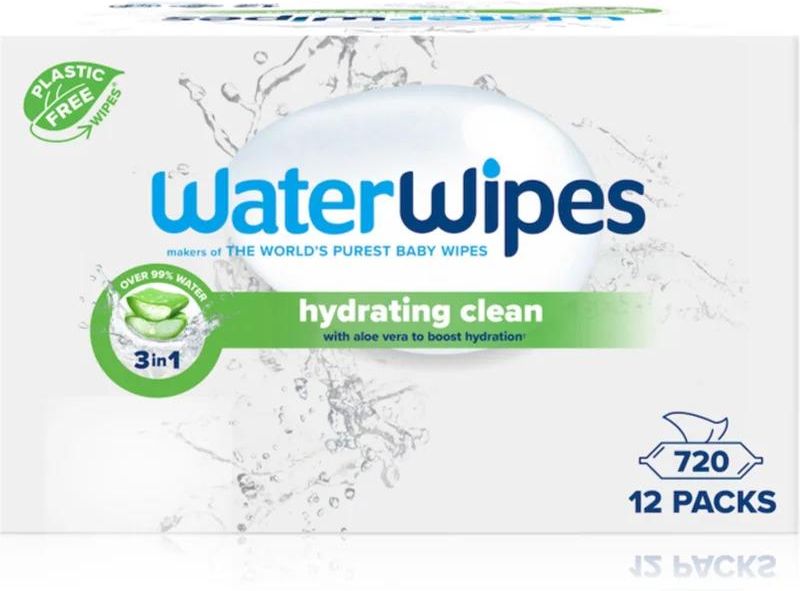 WaterWipes Hydrating Clean, 12x60 szt., Chusteczki nawilżane dla dzieci dla dzieci, Nie bój się cieszyć każdą wspólną chwilą, nawet jeśli Twoje dziecko w tym czasie się ubrudzi. Z wszelkimi zabrudzeniami w łatwy i szybki sposób, a przy tym delikatnie, poradzą sobie chusteczki nawilżane WaterWipes …