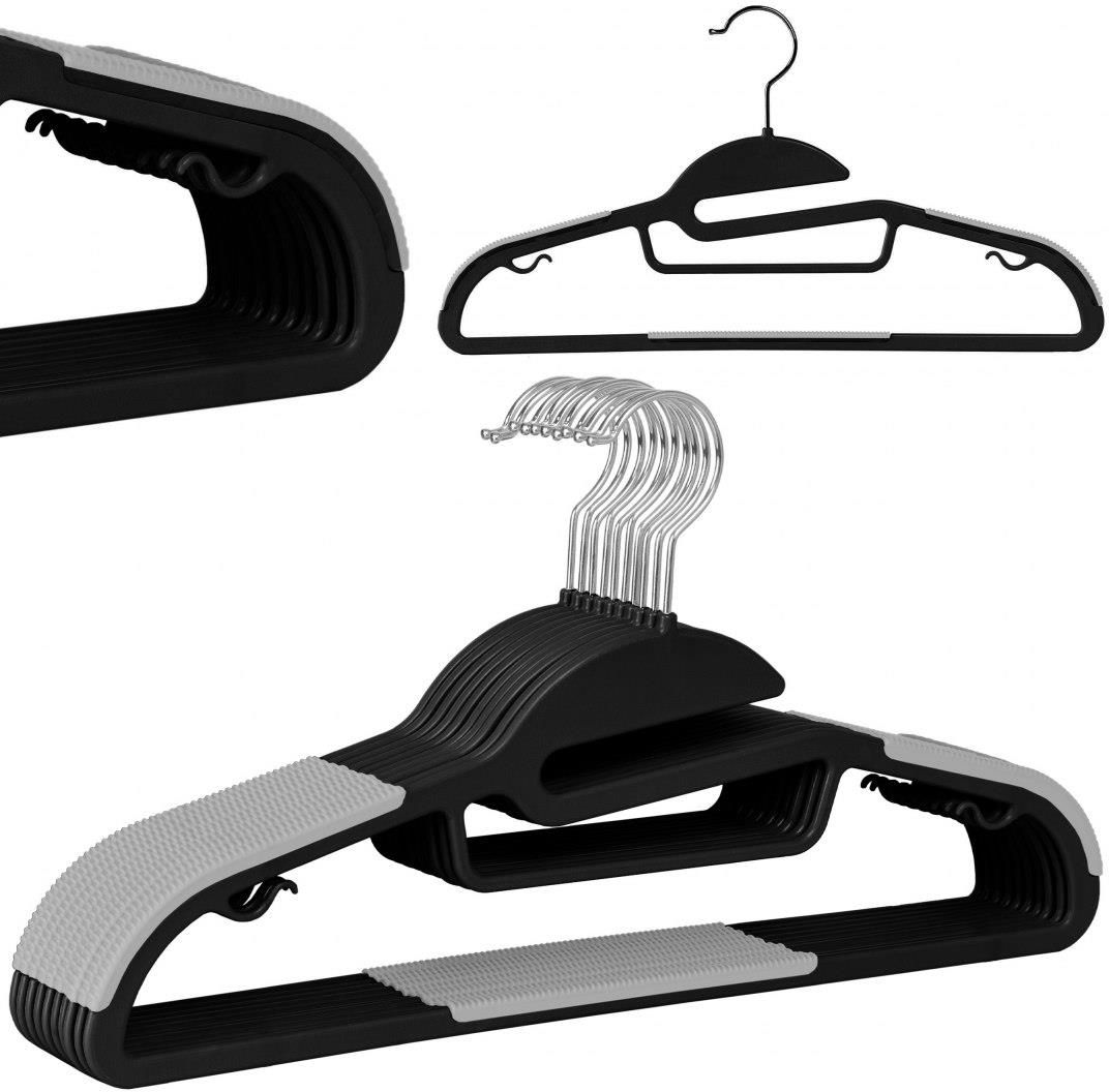 Wieszak ubraniowy FLEXI - komplet 10 sztuk Kolor: czarno-szary Praktyczne wieszaki z antypoślizgowymi nakładkami Na naszej aukcji mamy do zaoferowania wieszaki plastikowe idealne do szafy, garderoby czy też ekspozycji odzieży. Wieszaki wykonane są z mocnego i wytrzymałego tworzywa sztucznego. Szare …