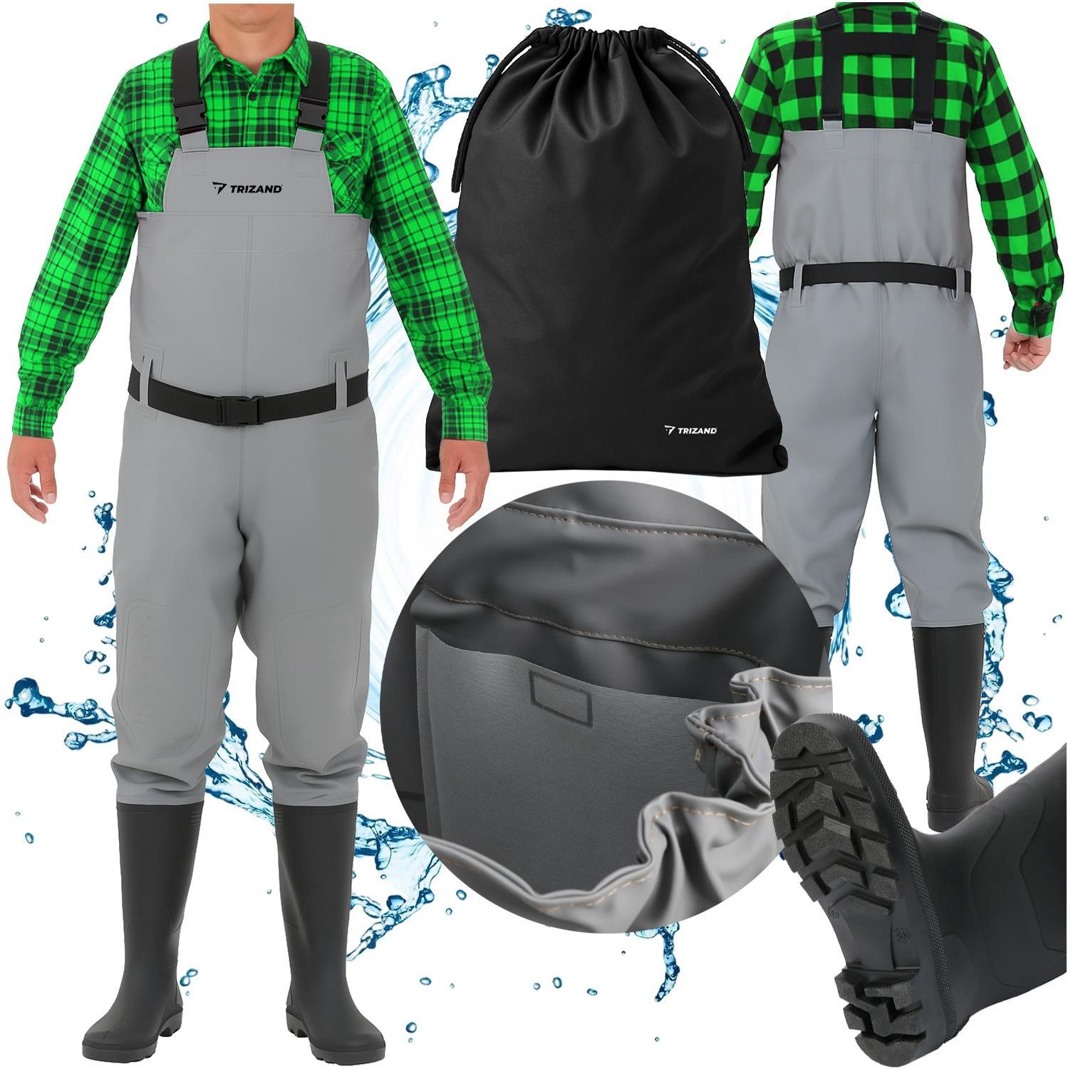 Wodery wędkarskie spodniobuty na ryby TRIZAND gumowe spodnie grube i długie + regulowane szelki rozmiar 44! nie przeciekają - wodery wędkarskie wykonane są z solidnego materiału PVC, zgrzewanego techniką wysokiej częstotliwości, dzięki temu są całkowicie szczelne – nie przeciekają nawet przy …