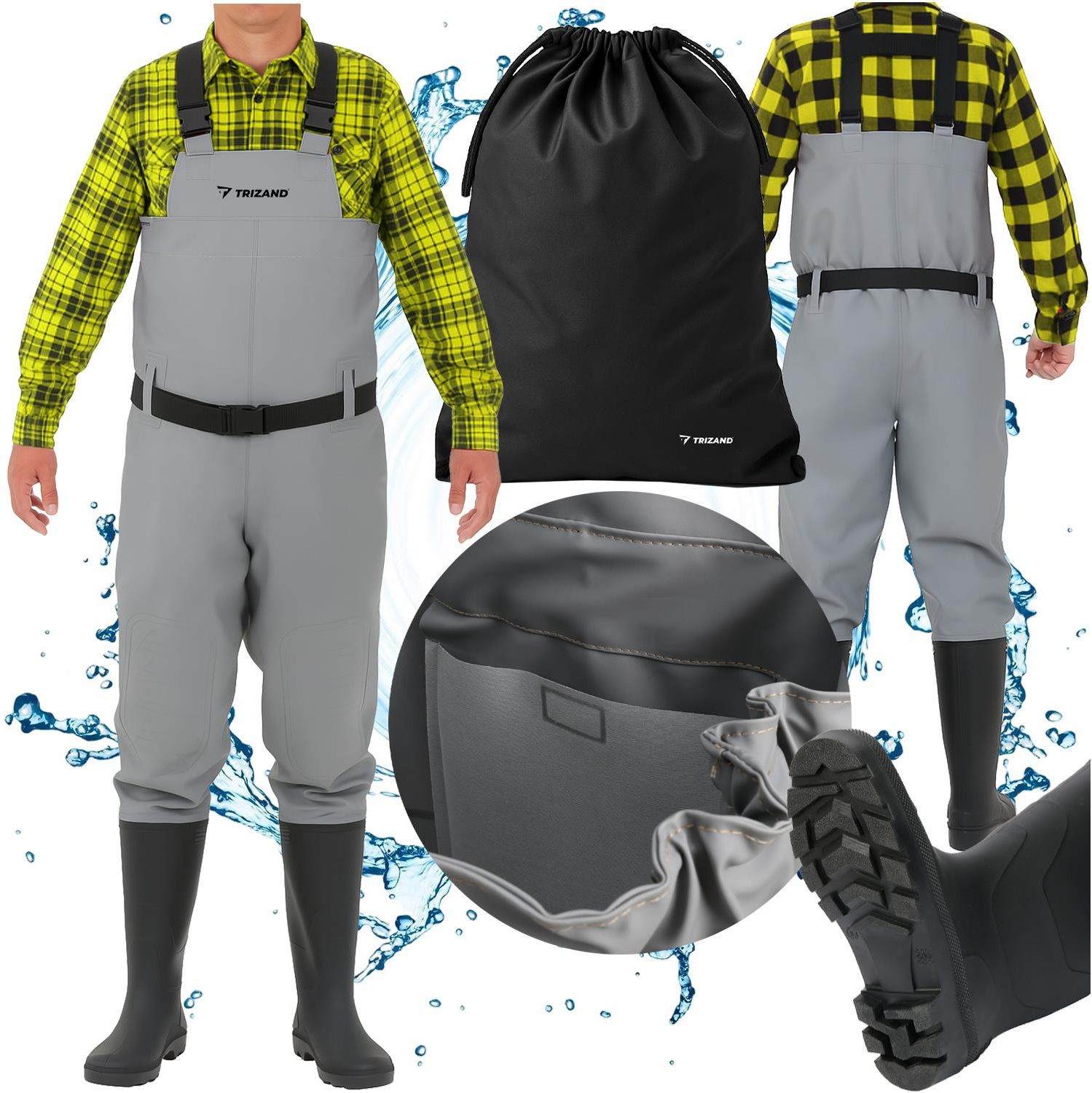 Wodery wędkarskie spodniobuty na ryby TRIZAND gumowe spodnie grube i długie + regulowane szelki rozmiar 45! nie przeciekają - wodery wędkarskie wykonane są z solidnego materiału PVC, zgrzewanego techniką wysokiej częstotliwości, dzięki temu są całkowicie szczelne – nie przeciekają nawet przy …
