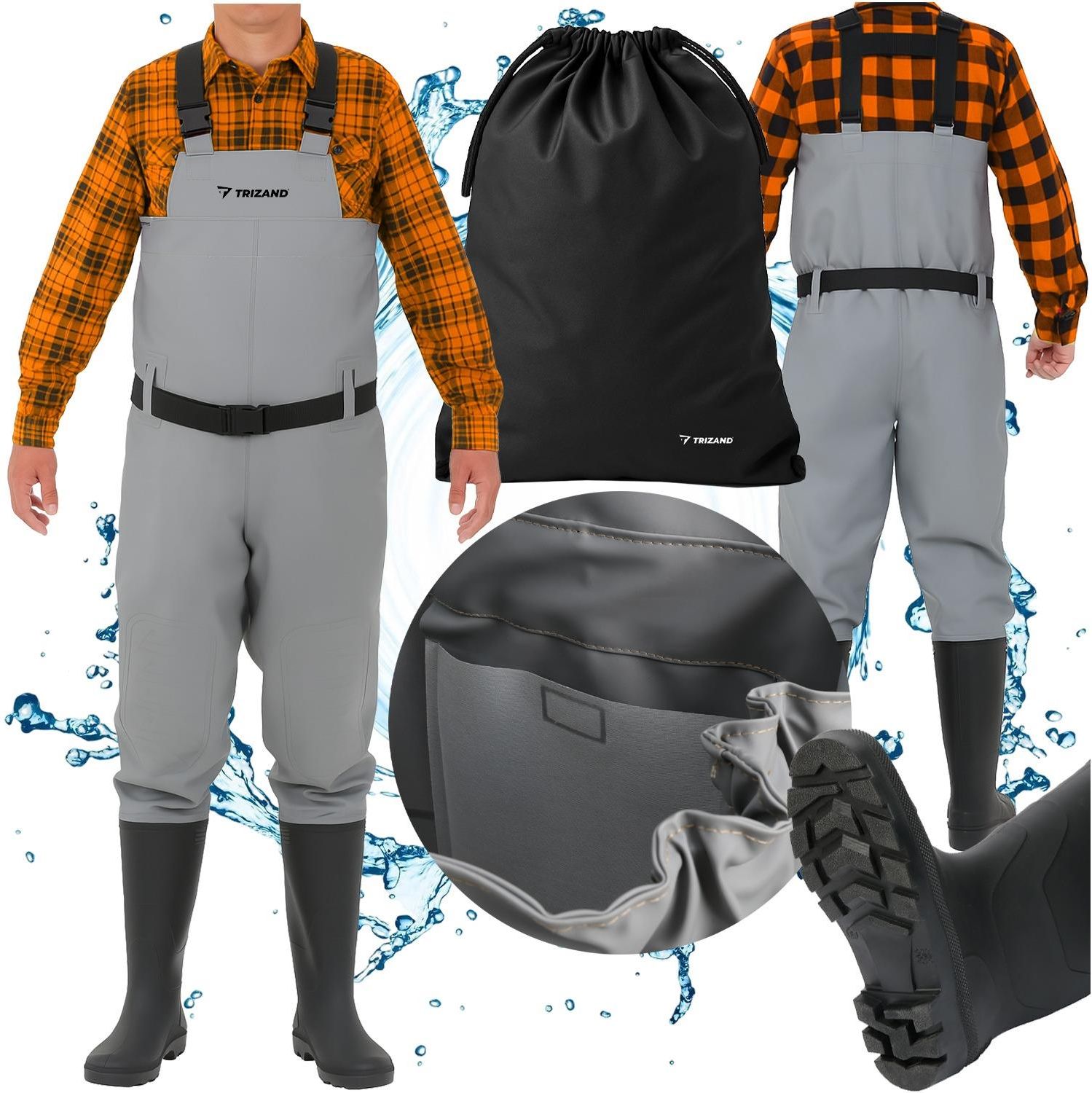Wodery wędkarskie spodniobuty na ryby TRIZAND gumowe spodnie grube i długie + regulowane szelki rozmiar 46! nie przeciekają - wodery wędkarskie wykonane są z solidnego materiału PVC, zgrzewanego techniką wysokiej częstotliwości, dzięki temu są całkowicie szczelne – nie przeciekają nawet przy …