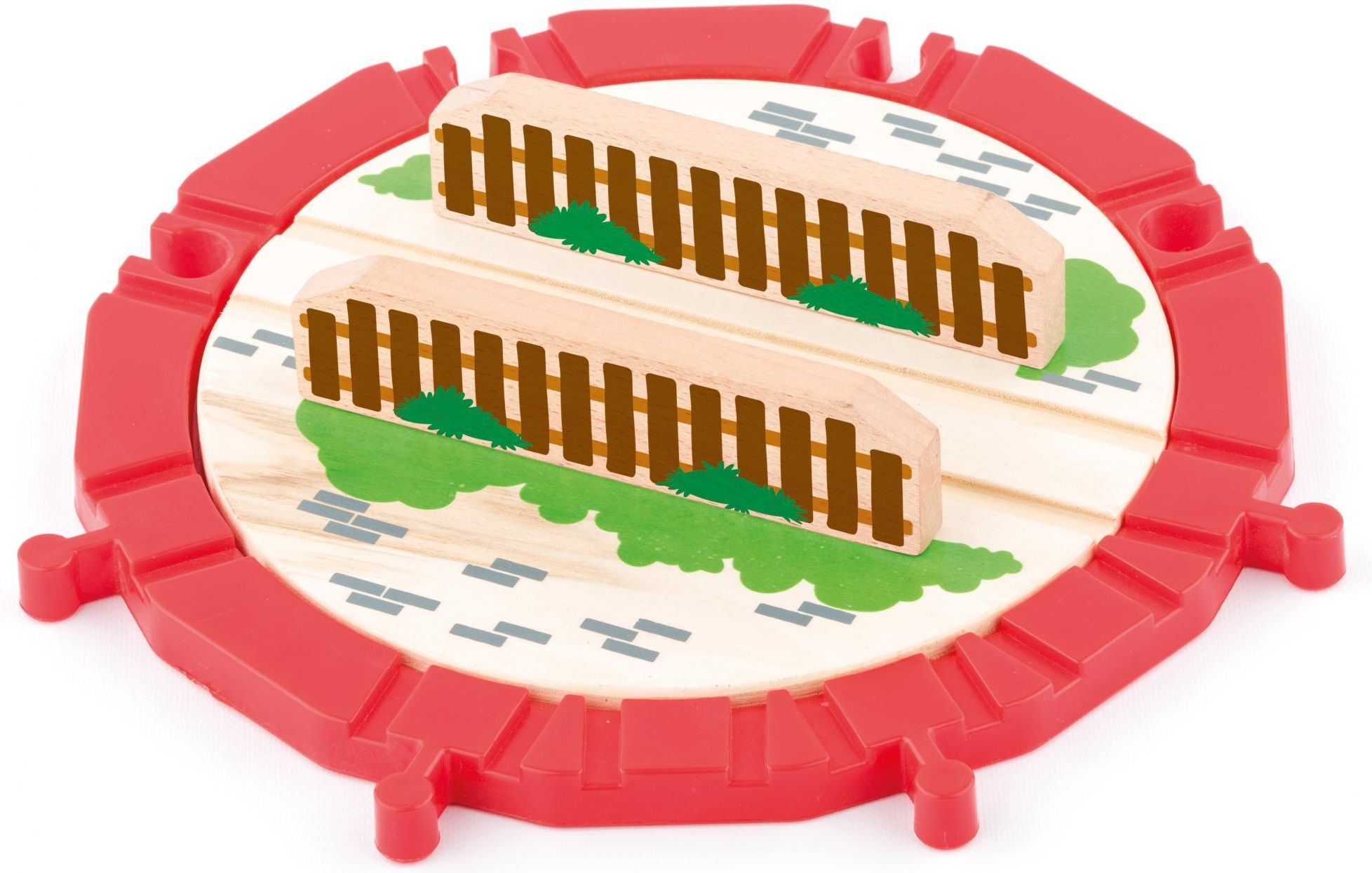Obrotnica kolejowa dla dzieci... ...składająca się z czterokierunkowej obrotnicy dla pociągów i samochodów. Jest kolorowo zaprojektowana i wykonana z drewna, z dwoma poręczami mostu. Poręcze mogą być używane do obracania obrotnicy w różnych kierunkach. Połączenie z szynami jest wykonane z …