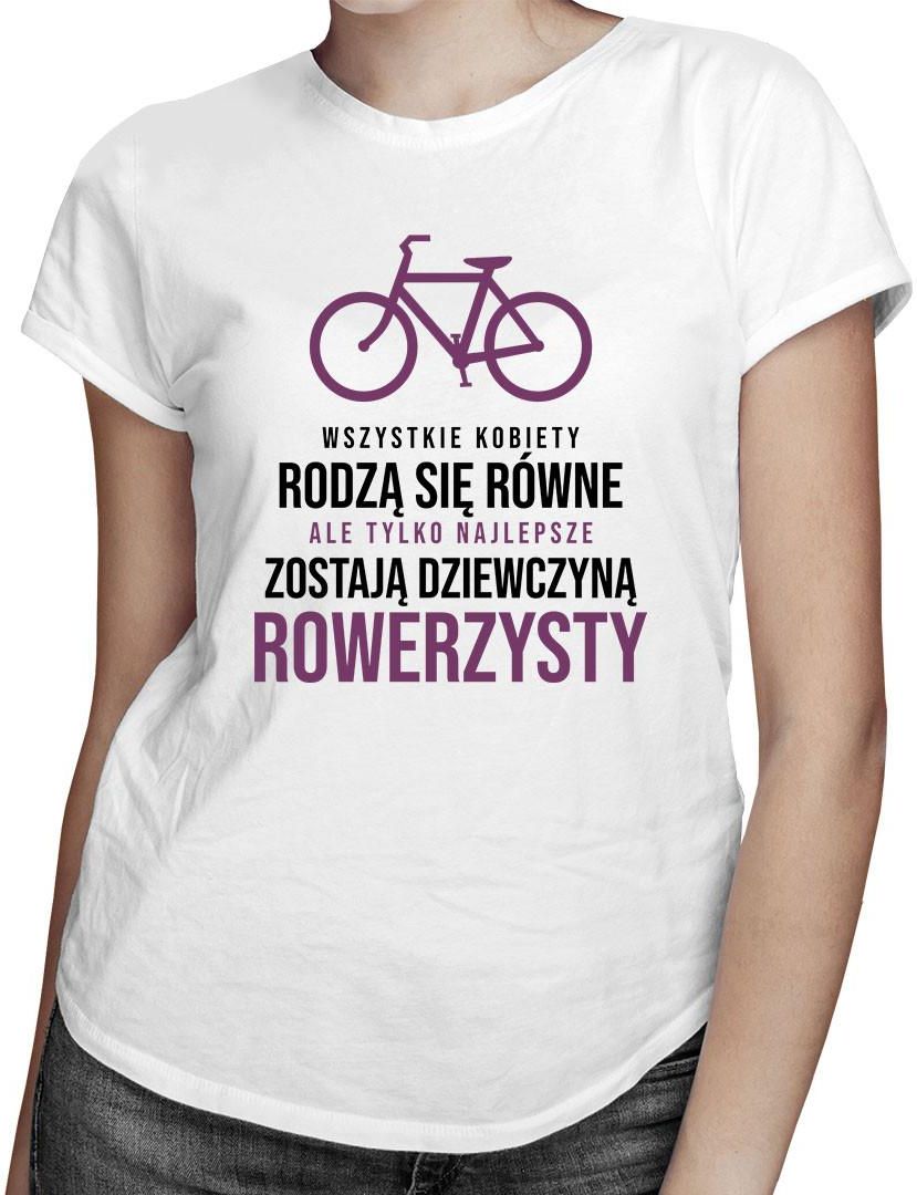 Wszystkie kobiety rodzą się równe ale tylko najlepsze zostają dziewczyną rowerzysty Koszulka z nadrukiem. Idealna na prezent. Wykonana z grubej, miłej w dotyku, wysokiej jakości bawełny.