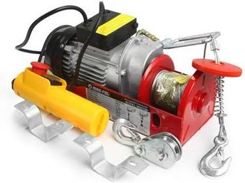 Wyciągarka 230V 550W 150/300kgWYCIĄGARKA WCIĄGARKA ELEKTRYCZNA LINOWA 150/300kgWyciągarka budowlana o szerokim uniwersalnym zastosowaniu w garażu, warsztacie czy na budowie. Wyciągarka posiada wysoki standard bezpieczeństwa, dzięki zdalnemu zastosowaniu sterowania z przyciskiem awaryjnego zastosowania, mocny wydajny silnik (550 W), hamulec do bezpiecznego zatrzymania ładunku na pożądanej wydajności oraz automatyczny wyłącznik z natychmiastowym zatrzymaniem.Wciągarka przystosowana jest do bezpiecznego podnoszenia i opuszczania ciężkich przedmiotów takich jak silniki, materiały budowlane, ciężkie narzędzia itp.Wyciągarka jest bardzo prosta w obsłudze.Dane Techniczne: Maksymalny udźwig 1/2 liny: 150/300 kg Zasięg 1/2 liny: 12 / 6 M Moc silnika: 550 W Napięcie zasilania: 230 V Lina stalowa o grubości 3 mm Waga: 12 kg