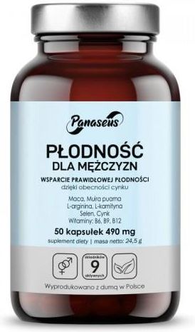 Płodność dla mężczyzn PANASEUS 50 kapsułek Zestaw składników odżywczych dla wsparcia mężczyzn Zdrowie seksualne i wytwarzanie zdrowego nasienia w odpowiednich ilościach wymaga od organizmu mężczyzny wielu niezbędnych surowców. W szczególności okres, w którym staramy się o potomka może być jeszcze bardziej wymagający, ponieważ musimy wówczas zadbać nie tylko o ogólne zdrowie organizmu, ale i o kilka ważnych wskaźników w naszym nasieniu. NA CZYM POLEGA ZDROWE NASIENIE? Przeciętny mężczyzna produkuje 1500 plemników na sekundę. W ciągu całego życia ich liczba wynosi ponad 500 miliardów. Mimo to, jedynie niewielki procent z nich jest w stanie począć nowe życie. To, czy Twoje plemniki mogą wykonać zadanie, zależy zarówno od ich liczby, jak i kilku innych wskaźników. Ilość plemników: Mężczyzna jest uważany za płodnego, jeśli liczba plemników wynosi co najmniej 40 milionów na mililitr (w niektórych przypadkach może dochodzić nawet do 300 milionów!). Ilość plemników poniżej 10 milionów/ml jest klasyfikowana jako oligospermia, co oznacza słabą płodność. Jakość plemników (morfologia): Badaniom podlega kształt i struktura plemników. Jeżeli więcej niż 4% całej objętości nasienia posiada naturalną owalną główkę i długą witkę, mężczyznę uważa się za płodnego. Natomiast w przypadku, gdy główka jest za duża, za mała, lub zwęża się w jakikolwiek sposób, albo jeśli ogon jest skręcony lub zbyt krótki, plemnik nie jest zdolny do zapłodnienia. Ruchliwość plemników: Nawet, jeśli masz dużo zdrowych plemników, muszą one być w stanie pokonać tych kilka centymetrów w górę szyjki macicy do komórki jajowej. Mężczyzna jest uważany za płodnego, gdy pływające plemniki przekraczają 40% całkowitej ich ilości w nasieniu. W JAKI SPOSÓB NATURALNIE WESPRZEĆ SWOJĄ PŁODNOŚĆ Podobnie jak wiele innych aspektów naszego zdrowia, płodność mężczyzny poprawia się dzięki zdrowemu trybowi życia. Utrzymanie optymalnej wagi, dieta bogata w antyoksydanty (znajdujące się m.in. w owocach i warzywach) oraz odpowiednio dobrane witaminy i minerały mogą poprawić jakość nasienia. Unikaj też spożywania alkoholu, palenia tytoniu, czy narkotyków, ponieważ mogą one mieć negatywny wpływ na jakość Twoich plemników. 9 NATURALNYCH SKŁADNIKÓW DLA WSPARCIA MĘŻCZYZN: - Maca: ma korzystny wpływ na płodność i działa afrodyzyjnie. - Cynk: pomaga w utrzymaniu płodności i funkcji rozrodczych, a także pomaga w prawidłowej syntezie DNA. - L-arginina: to naturalnie występujący w organizmie aminokwas, który pomaga ciału w wytwarzaniu białek. - L-karnityna: jej główną rolą jest funkcja transportowa długołańcuchowych kwasów tłuszczowych do mitochondriów, gdzie ulegają one przemianom w wyniku których powstaje energia. - Selen: przyczynia się do prawidłowego przebiegu spermatogenezy i chroni przed stresem oksydacyjnym. - Witamina B3: wspomaga odpowiedni metabolizm energetyczny i zmniejszenie poczucia zmęczenia i znużenia. - Witamina B6: przyczynia się do regulacji aktywności hormonalnej. - Witamina B9: bierze udział w procesie podziału komórek. - Muira puama: występuje naturalnie w formie krzewu lub niewielkiego drzewa w Ameryce Południowej, w dorzeczu Amazonki i Orinoko. Do sporządzania ekstraktów wykorzystuje się jej korzeń. Składnik aktywny 1 kapsułka Maca – ekstrakt 10:1 100 mg Muira puama – ekstrakt 10:1 80 mg Pikolinian cynk w tym cynk (20%) 50 mg10 mg (100%) L-arginina 40 mg L-karnityna 40 mg L-selenometionina w tym selen 10 mg100 µg (182%*) Witamina B3 (niacyna) 16 mg (100%*) Witamina B6 (pirydoksyna HCL) 1,4 mg (100%*) Witamina B9 (kwas pteroiloglutaminowy) 600 µg (300%*) *RWS – referencyjna wartość spożycia Dawkowanie: 1 kapsułka raz dziennie. Sposób użycia: Połknąć i popić dużą ilością wody, po pierwszym posiłku Składniki: ekstrakt z korzenia maca (Lepidium meyenii) 10:1, ekstrakt z muira puama (Ptychopetalum olacoides) 10:1, substancja wypełniająca: celuloza mikrokrystaliczna, pikolinian cynku (cynk), L-arginina, L-karnityna, L-selenometionina (selen), niacyna (witamina B3), pirydoksyna HCL (witamina B6), kwas pteroiloglutaminowy (witamina B9).Skład kapsułki: celuloza roślinna (wegetariańskie).Ostrzeżenie: Osoby przyjmujące leki przed użyciem powinny skonsultować się z lekarzem lub farmaceutą. Niewskazane dzieciom, kobietom w ciąży oraz karmiącym.Podmiot odpowiedzialny: YANGO Sp. z o.o. ul. Granitowa 3/14, 02-681 Warszawa.Uwagi: Nie przekraczać zalecanej dziennej porcji. Suplement diety nie może być stosowany jako substytut zróżnicowanej diety i zdrowego trybu życia. Przechowywać w suchym i ciemnym miejscu w temperaturze pokojowej, w sposób niedostępny dla małych dzieci. Informacja alergiczna:Nie zawiera skorupiaków, jaj, orzechów, soi, składników mlecznych, selera, gorczycy, sezamu. Produkowane bez użycia sztucznych substancji konserwujących, zapachowych lub barwiących.Produkt wolny od metali ciężkich, takich jak arsen, kadm, ołów czy rtęć. Wizualizacja może różnić się od opakowania rzeczywistego. Główny Inspektorat Sanitarny: 2022/04/27/SD/89BDD0